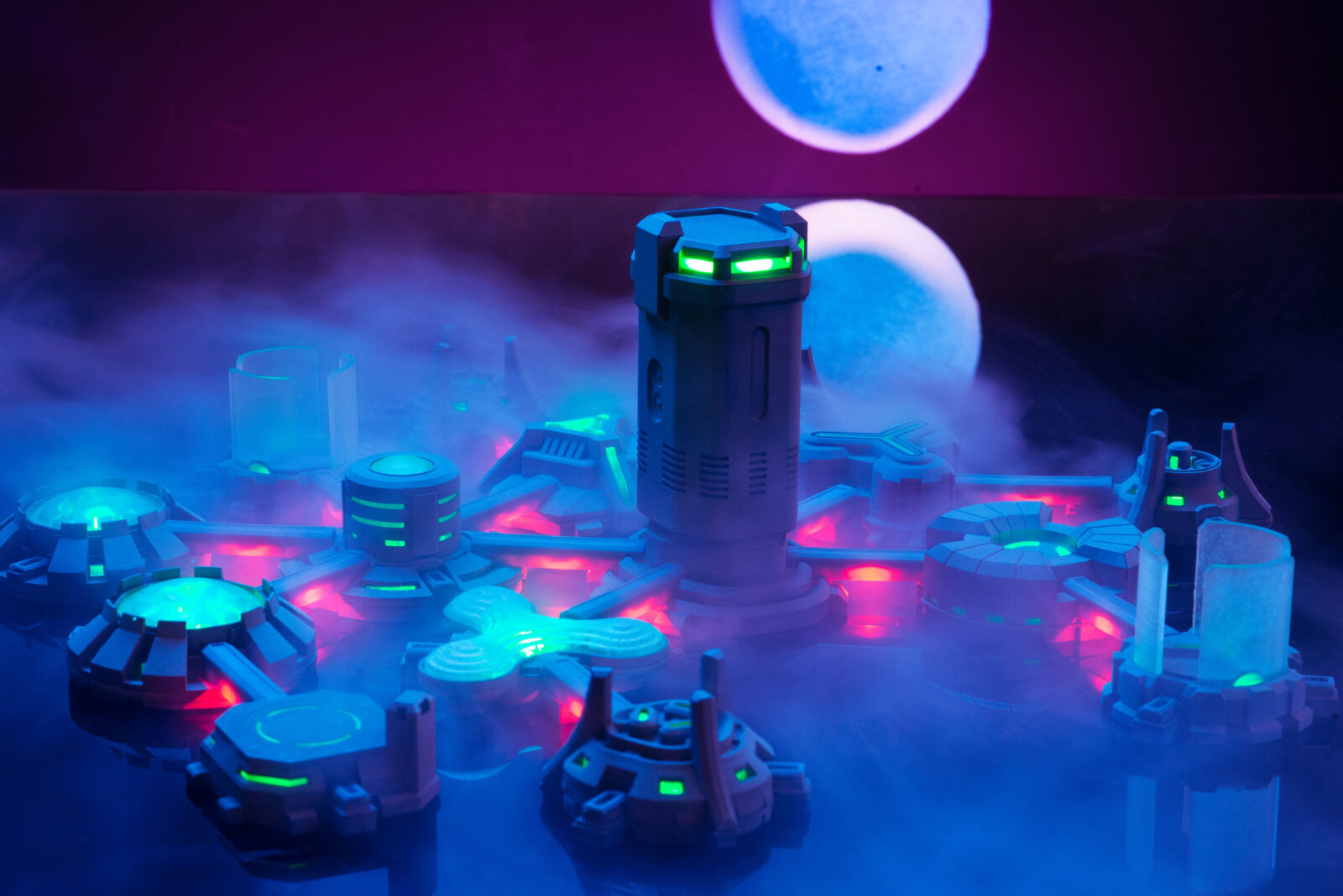 So how is it that a tiny new company, comprised of a few game-loving friends, has blasted past established companies with hundreds of millions of dollars in revenue? Three Headed Monster (THM) cofounder Casey McBeath stated, “explosive evolution requires outside provocation.” As crowdfunding backers and board game collectors themselves, the cofounders of THM realized their diverse career experiences and expertise could be combined to create their dream board game. Staffed with team members possessing expert knowledge of computer programming, engineering, storytelling, graphic design, and mathematics, THM seems purpose-built to deliver the dream of what hybrid games should be.