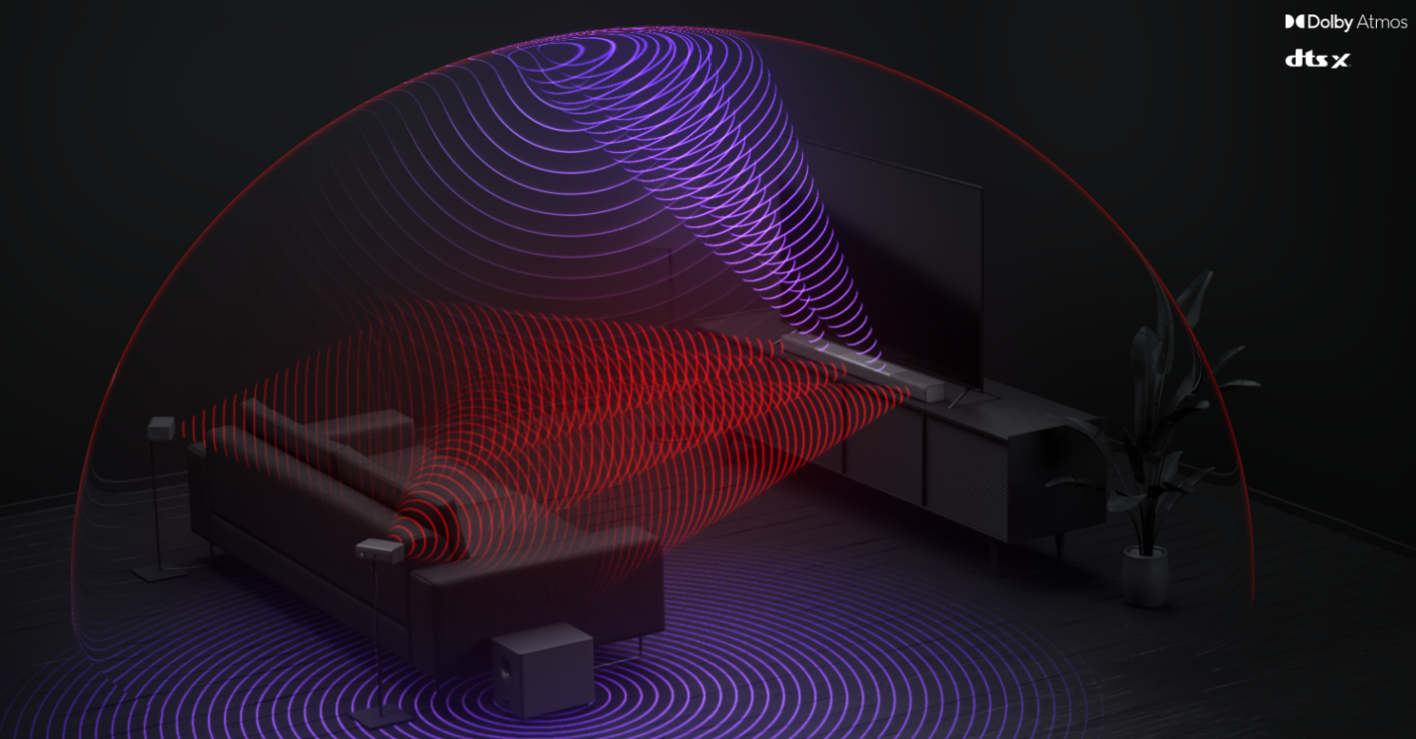 Tucked inside the low-profile, fabric-wrapped enclosure is an uncompromising, full-featured audio system with performance that outperforms its size. High-fidelity tweeters and woofers deliver 98dB of audio output with life-like clarity and detail while built-in dual subwoofers bring impactful bass down to 50Hz for your favorite movies, music, and games. With premium components and integrated audio technologies such as DTS Virtual:X, truly immersive sound is now possible from a one-piece system that fits just about anywhere.