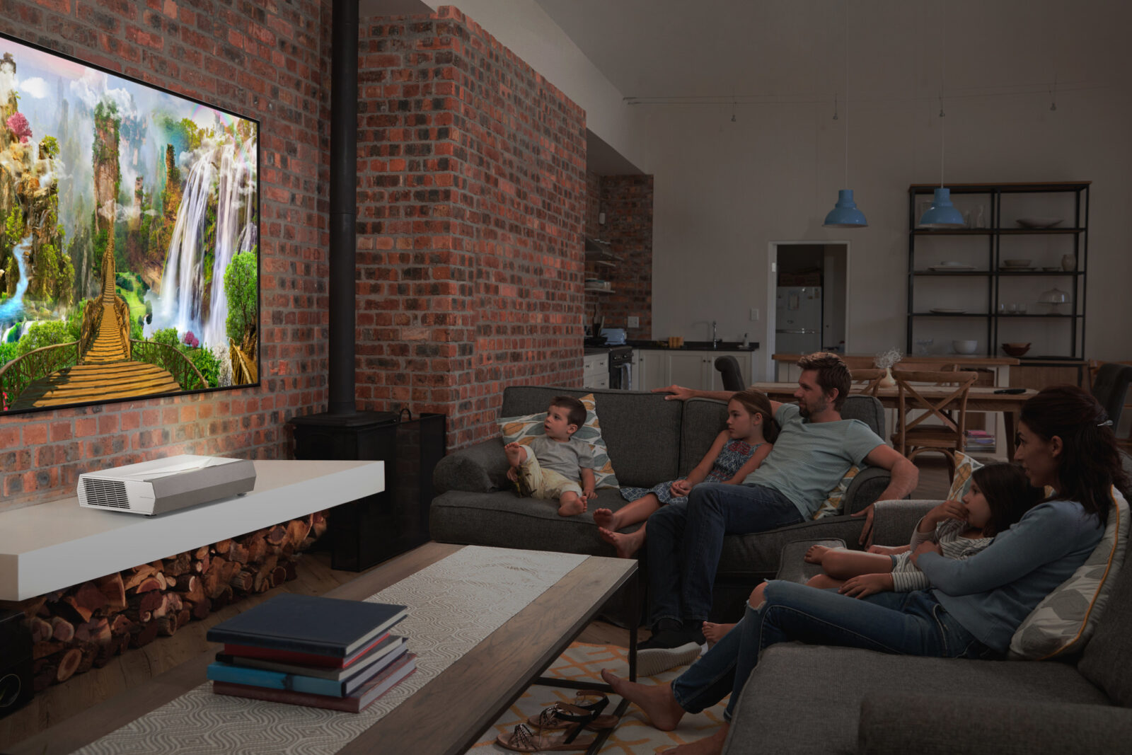 - Ultra short throw optical design, 100-inch big screen in just inches away.