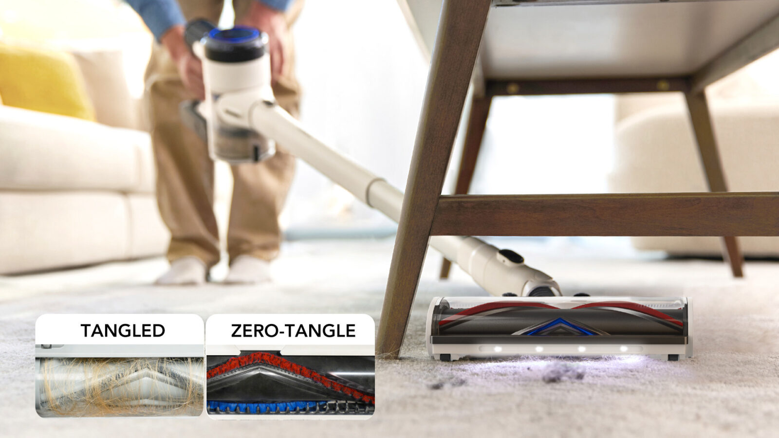 Equipped with the ZeroTangle™ brush head, the Tineco “Pet” Series Vacuum Cleaners are the optimal solution to this problem. The company’s patented ZeroTangle™ technology features a dual-comb design, combined with angled bristles to actively separate and remove hair from the brush roller with each rotation, eliminating tangles and preventing clogs. And, when tested under laboratory conditions, this feature was found to reduce tangling by 99%.