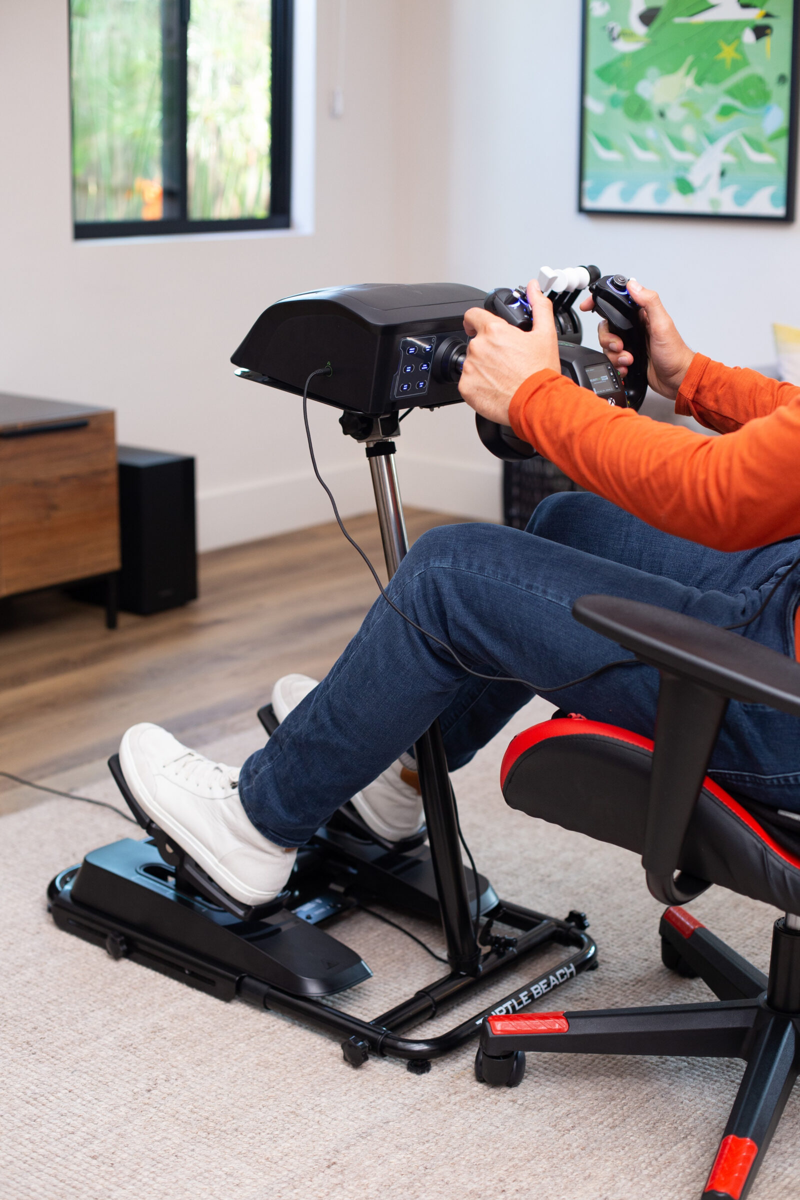 Leading gaming headset and accessory maker Turtle Beach Corporation (Nasdaq: HEAR) today announced the Turtle Beach® VelocityOne™ Stand is now available globally. The VelocityOne Stand completes Turtle Beach’s ultimate award-winning flight simulation setup, as it houses the VelocityOne Flight Universal Control System or VelocityOne Flightstick, along with the VelocityOne Rudder pedals to deliver a modern flight simulation experience at home. VelocityOne Stand has built-in quick release latches for adjusting the height, angle, and length to adapt to any player and environment. Additionally, the upper mounting platform tilts for proper yoke, stick, or wheel placement, and the lower platform can be similarly adjusted for rudder or racing pedals. The VelocityOne Stand’s reversible design allows it to be used facing either direction, and solid steel mounting platforms are predrilled to ensure a perfect fit. Anti-wobble, adjustable rubber feet keep the VelocityOne Stand firmly planted, and a convenient fold-flat design allows for stowing away easily without needing to unmount your accessories. Turtle Beach’s VelocityOne Stand is now available on www.turtlebeach.com and participating retailers for a $199.99 MSRP.