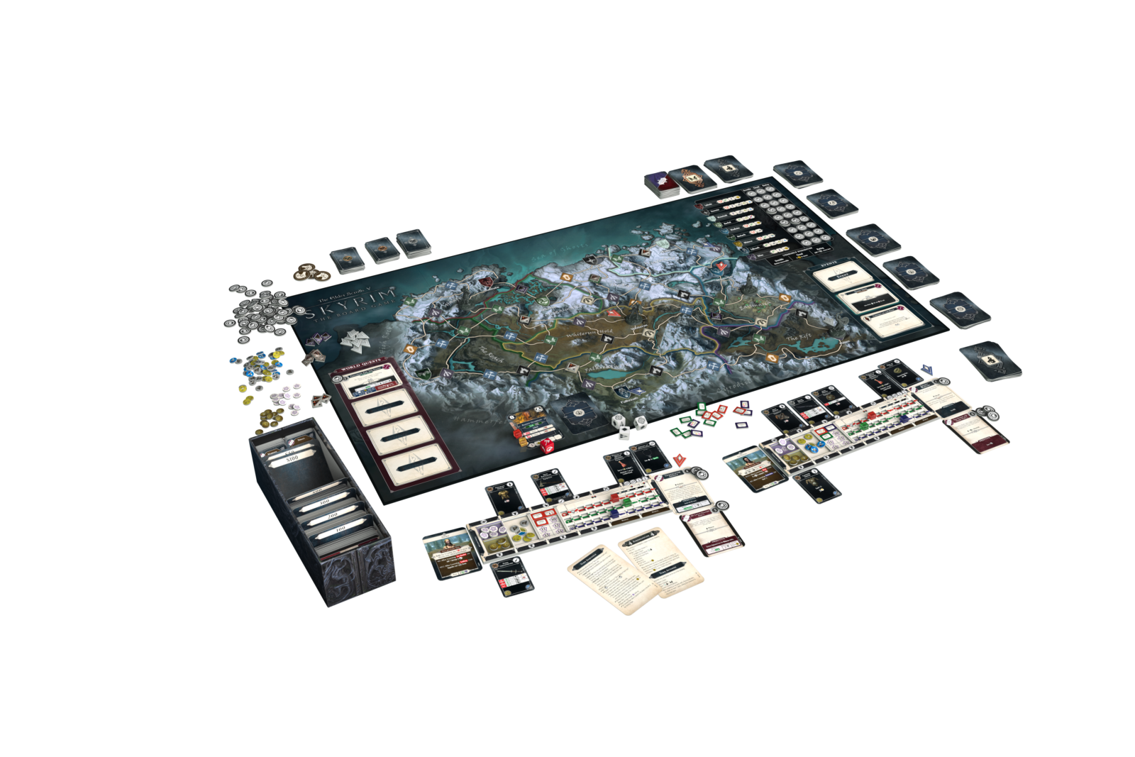- Familiar Friends and Foes: The core box includes the Nord, Dunmer, Imperial, Altmer, Khajiit, and Orsimer characters and their 32mm scale pre-assembled miniatures