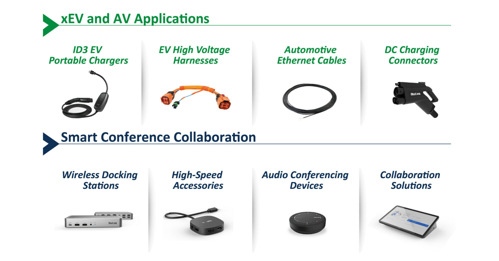 BizLink, a leading interconnect solutions provider, is pleased to present its interconnect solutions for xEV/AV and smart conference in CES, the world’s largest consumer electronics show. Our latest product portfolio for vehicle technology will be displayed in booth 6668 at West Hall, and you can also take a deeper glimpse at our conference collaboration solutions in Westgate suite 5103.