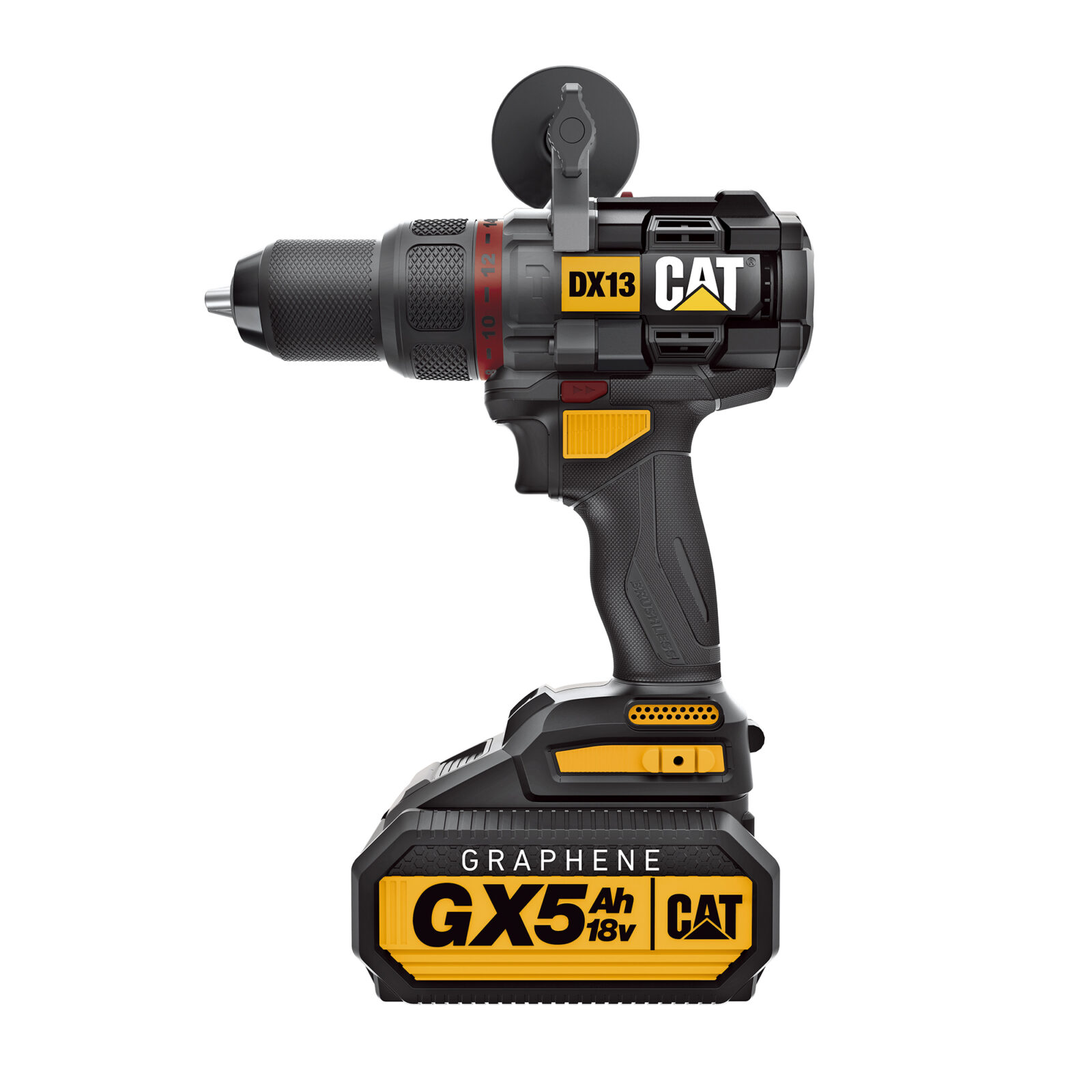The Cat 18V 1/2 in. DX13 Brushless Hammer Drill has a three-year limited warranty and the Cat 18V Graphene Battery features a five-year warranty.
