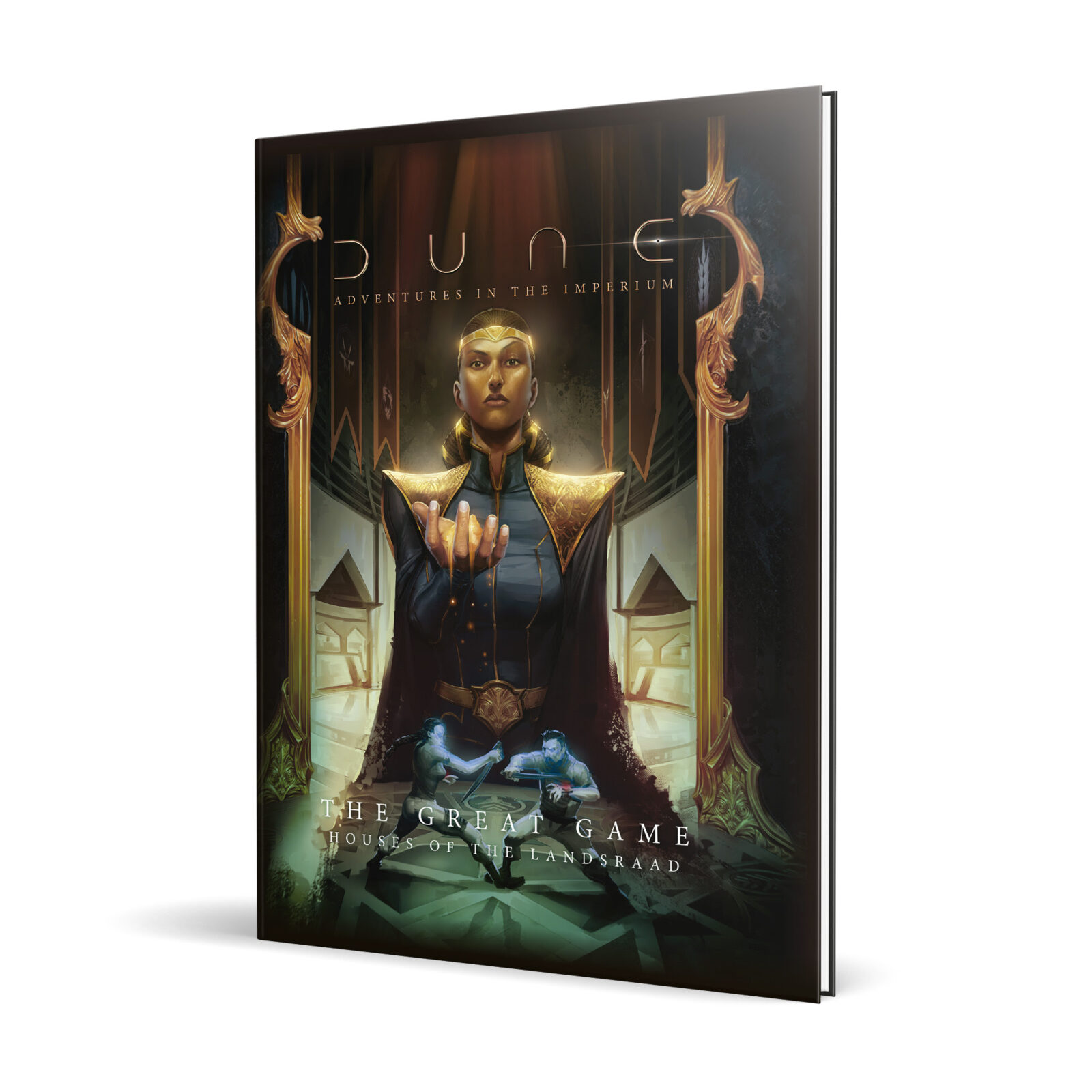 The Great Game: Houses of the Landsraad is a complete 128-page supplement for Dune – Adventures in the Imperium that expands your campaign away from Arrakis into the vast and deadly Imperium. It offers the opportunity for your House to vie for power among its peers. Politic with your rivals, bring power and wealth to your House, and challenge your position among the deadliest powerbrokers of the Landsraad.