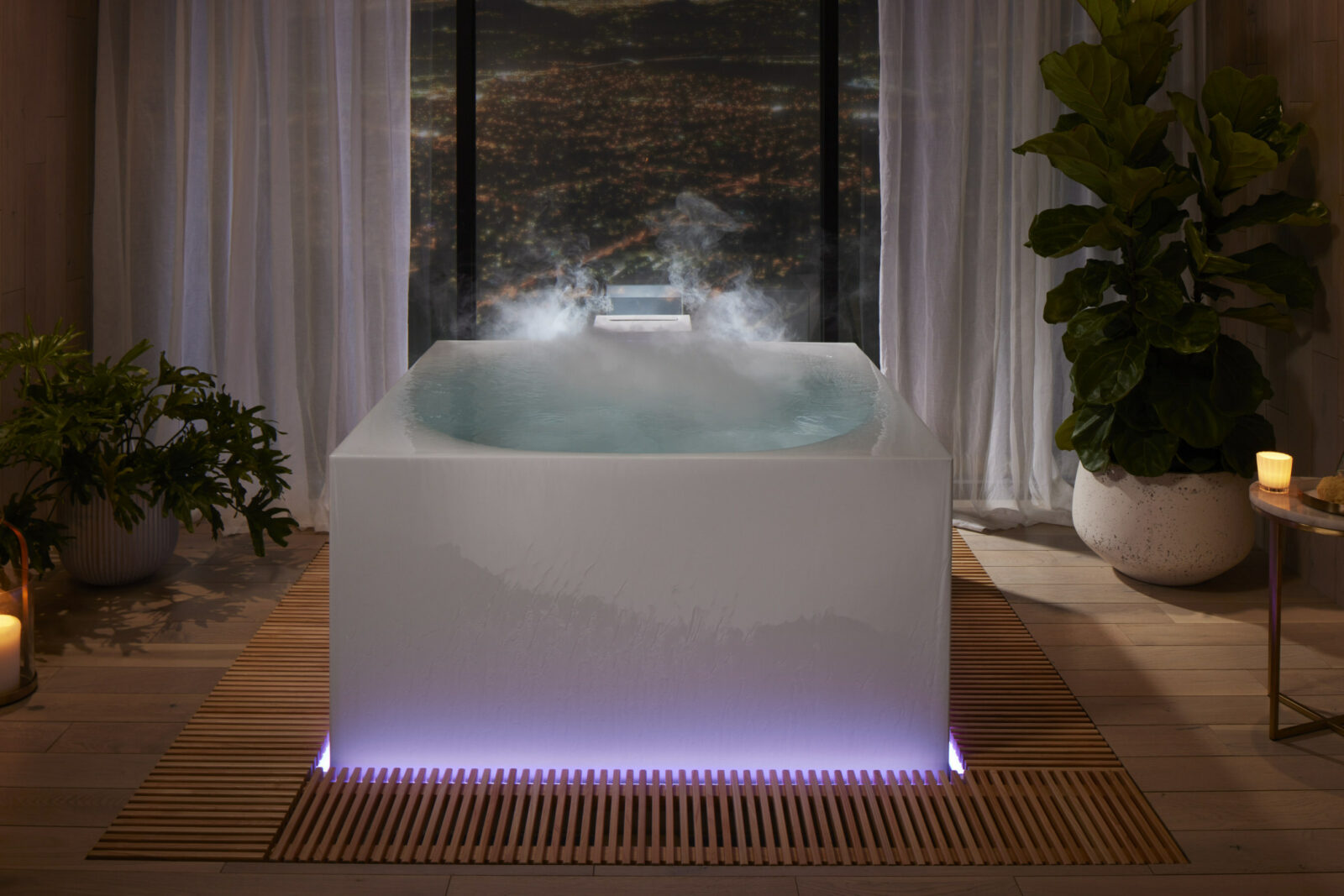 Kohler’s smart home products for the kitchen and bath aim to make moments better, whether that be through simple innovations or immersive wellness experiences. Stillness Infinity Experience upgrades bathing into a sanctuary for self-care and well-being by creating a transformative, sensory experience. Taking cues from the relaxing effects of nature, Stillness Infinity Experience provides a deep sense of tranquility and peace. Water, lighting, fog and essential oils converge to create an immersive journey of the senses designed to relax the mind, soothe the body, and renew the spirit. It starts with water filling from the bottom of the bath, overflowing into the Hinoki wood moat to create a soothing sound. Water from the moat recirculates into the bath, after passing through a filter. This allows for the experience of overflowing water and a maintained temperature up to 104 degrees Fahrenheit, without having to add more water. Full spectrum lighting surrounds the bath, creating a chromatherapy experience. Fog envelopes the surface of the water, immersing the bather, and essential oils can be added into the bath’s experience tower which emits aromas to stimulate the senses and promote relaxation.