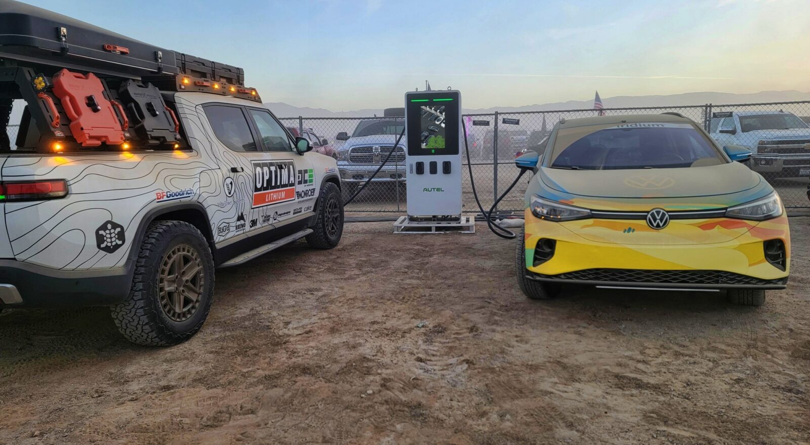 Autel chargers are in Hammertown, the campground that houses KOH guests. They have up to 260 kW of power which allows them to create 62 miles of range in only five minutes. The chargers and power are available at no charge to attendees.