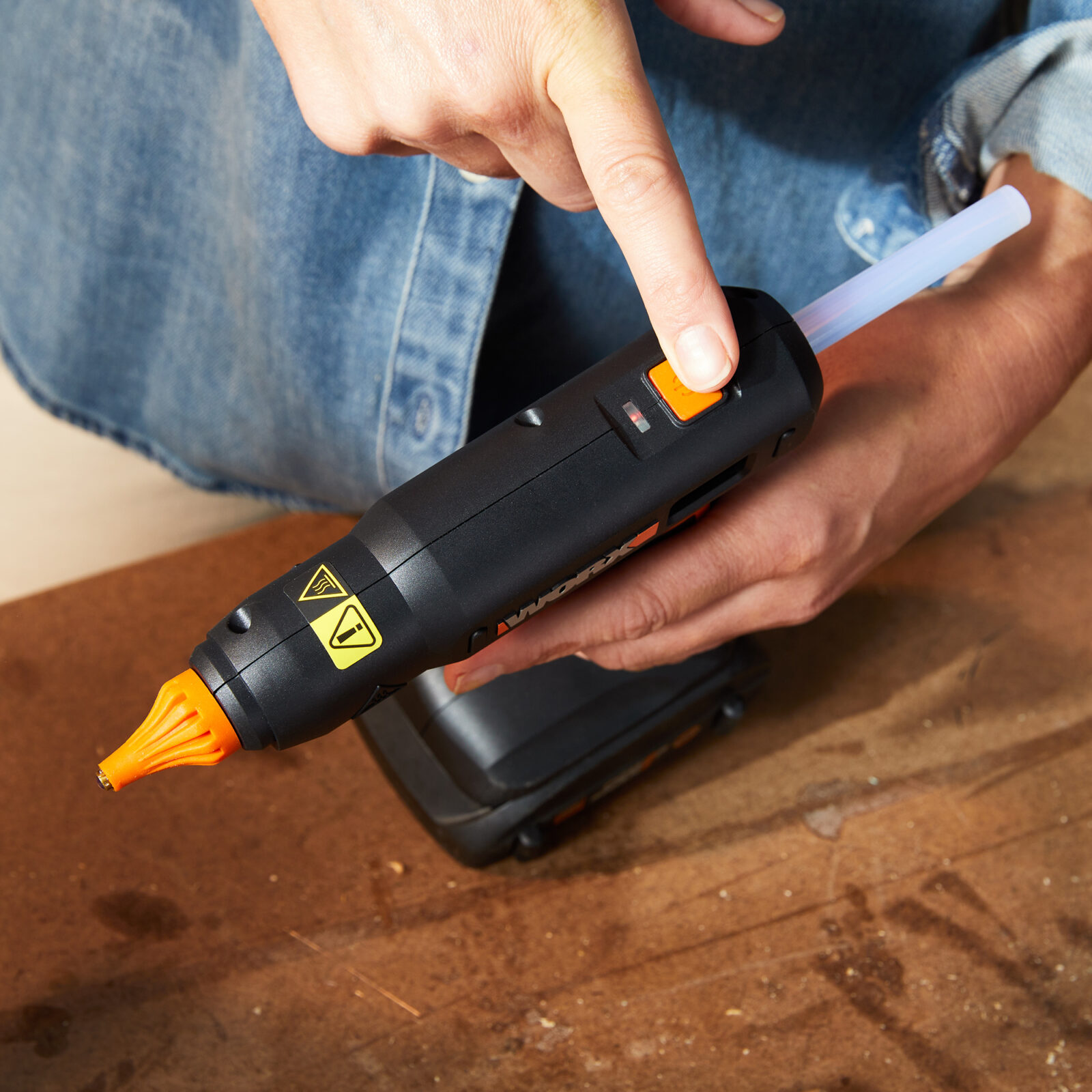 “Hot glue guns have been around a long time,” said Katie Roberts, WORX Senior Product Manager. “Ours is different versus the conventional glue gun since its body is similar to a cordless drill for sure handling and control. The 20V battery adds portability, as well as a solid footing for the tool to stand upright on its own.”