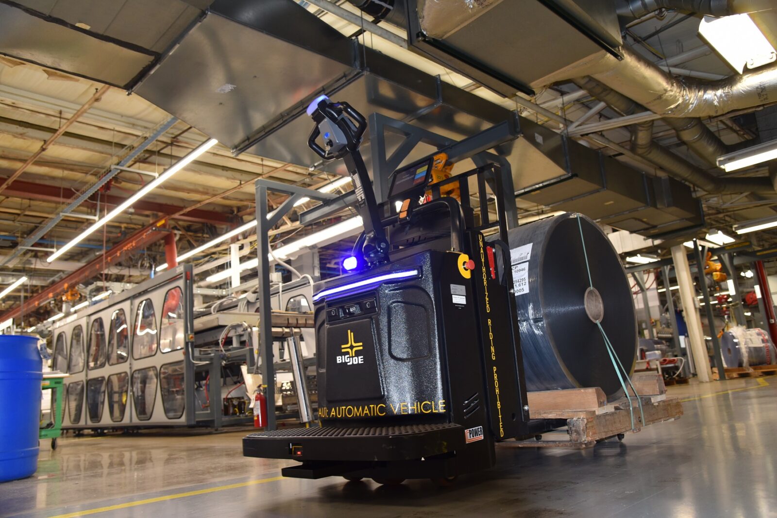 The Big Joe Pallet Mover can transport up to 4,400 lbs. of materials at speeds of up to 2.8 mph and can operate continuously for up to 10 hours. Power is supplied by a UL-recognized 205ah lithium battery which can be opportunity charged at the rate of one percent every six minutes via an on-board 120vac charger. Initial pricing for the Pallet Mover is set at $65,000 plus tax and freight per unit inclusive of deployment, initial training and a robust three-year autonomous software and support subscription. Optional items like a Universal Carrier load deck can be added to the Pallet Mover for customizable material handling applications, and additional services and purchasing options are available through Big Joe’s autonomous division and expansive servicing dealer network throughout North America.