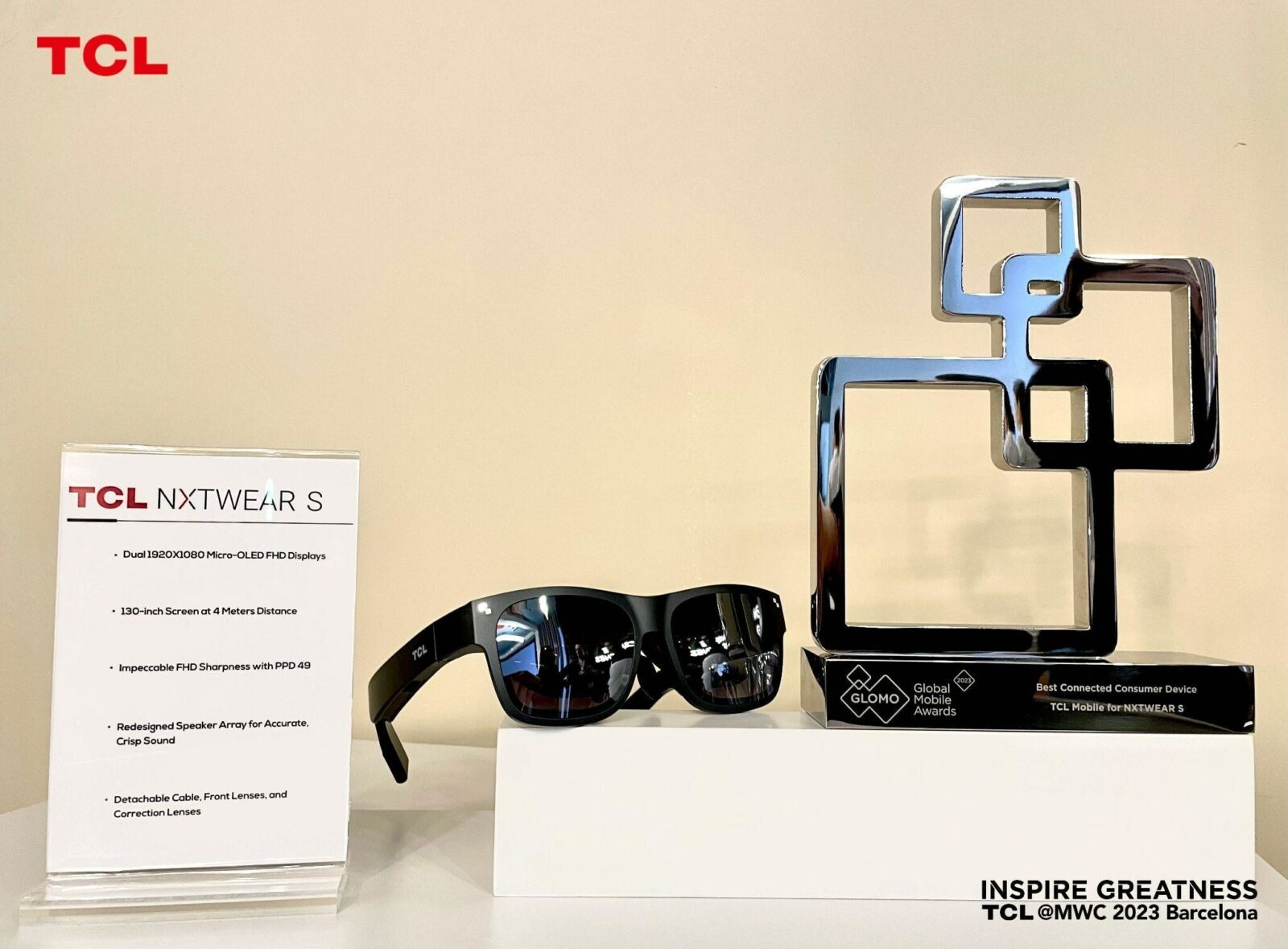 TCL, one of the world’s leading consumer electronics brands, is proud to announce that its TCL NXTWEAR S XR smart glasses have won the Best Connected Consumer Device Award at MWC’s Global Mobile Awards (GLOMO) 2023.