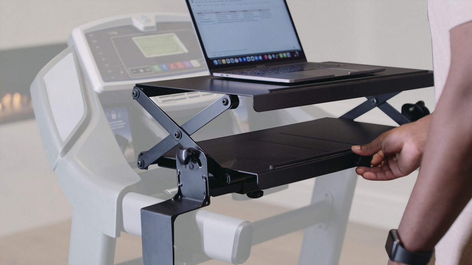 - Tilts for reading and keeping the desk level while walking on an incline