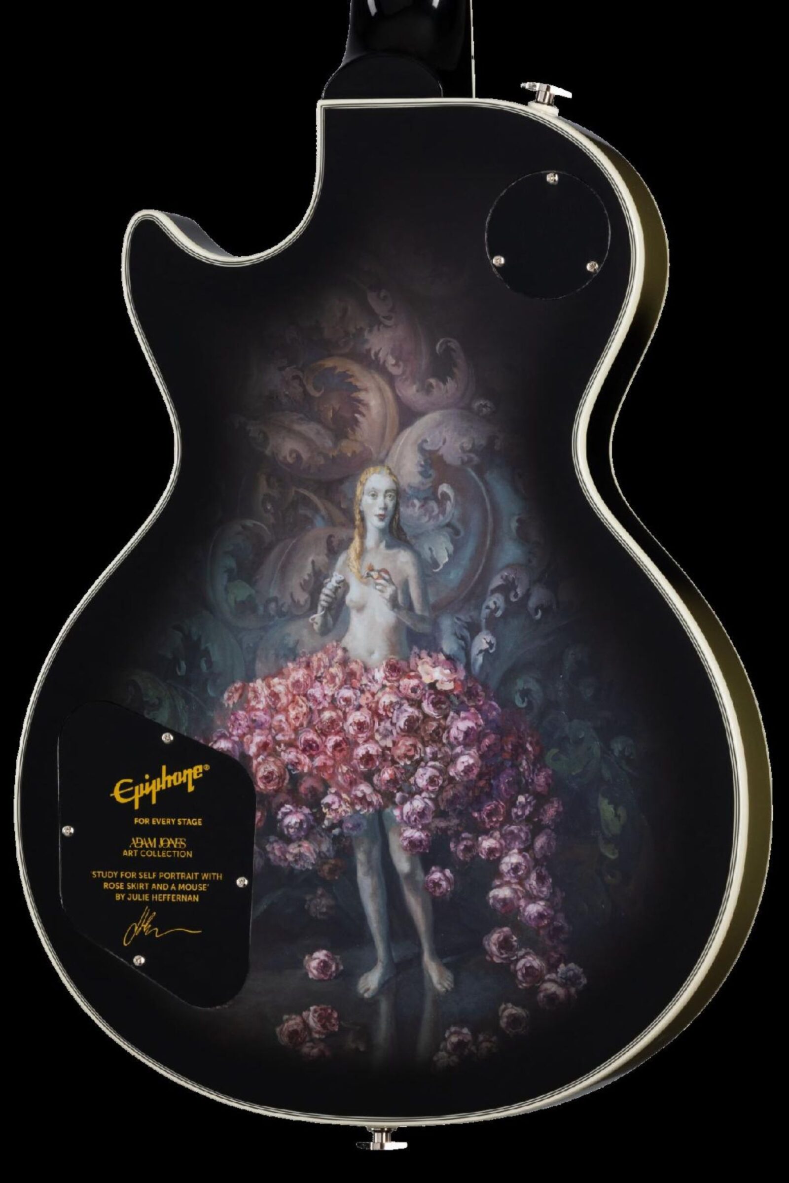 | Above (pictured front): Epiphone Adam Jones Les Paul Custom Art Collection: Julie Heffernan’s “Study For Self- Portrait with Rose Skirt and a Mouse.” |