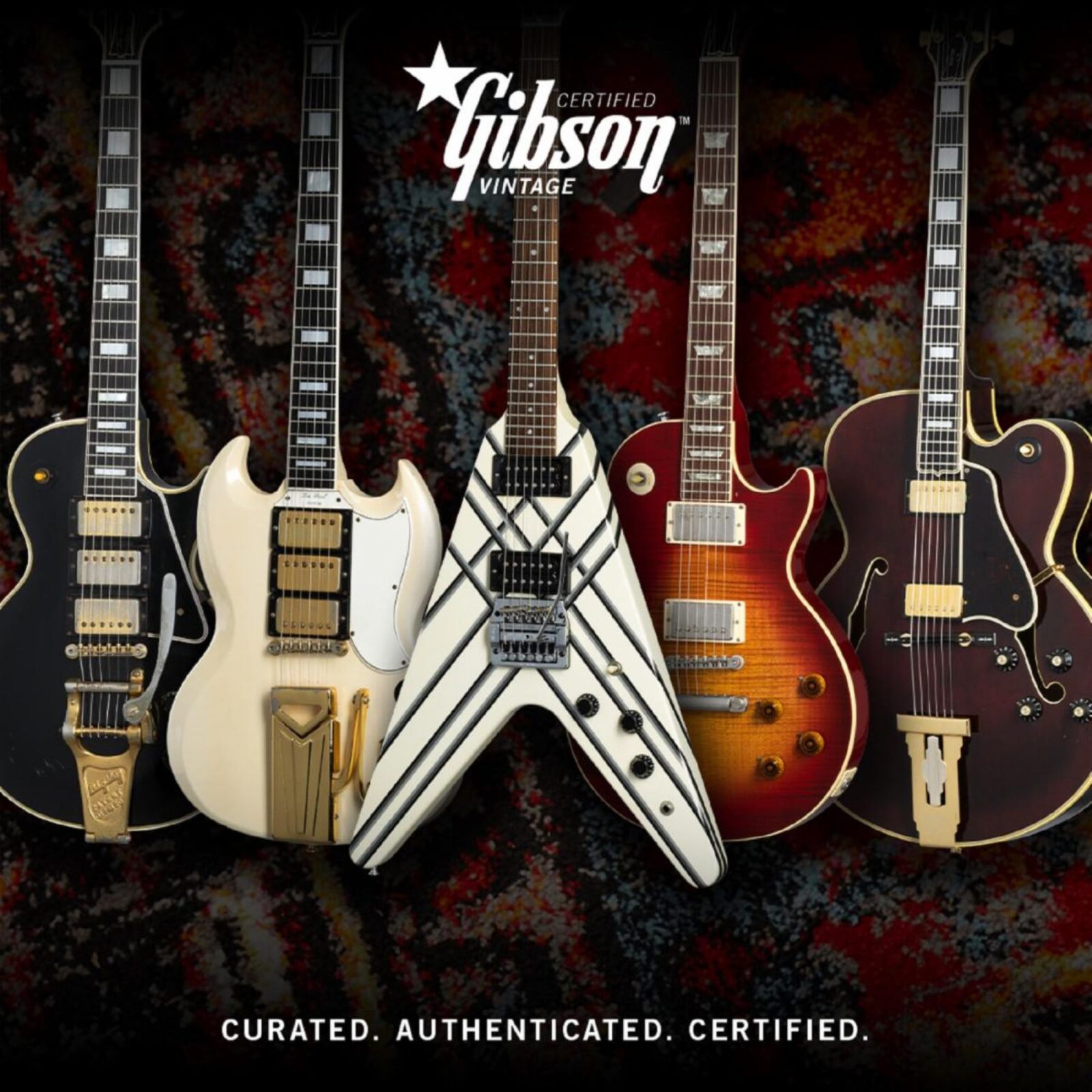 Today the Gibson Certified Vintage program premieres the next five models, a 1978 Custom L-5 CES, 1985 Designer Series Custom Graphics Flying V, 1980 Heritage Series Les Paul Standard 80 Prototype a 1961 Les Paul SG Custom, and a rare 1958 Les Paul Custom. Explore Gibson Certified Vintage guitars below and check back for refreshed vintage offerings as each guitar is sold; for all details, visit: https://www.gibson.com/en-US/Certified-Vintage.