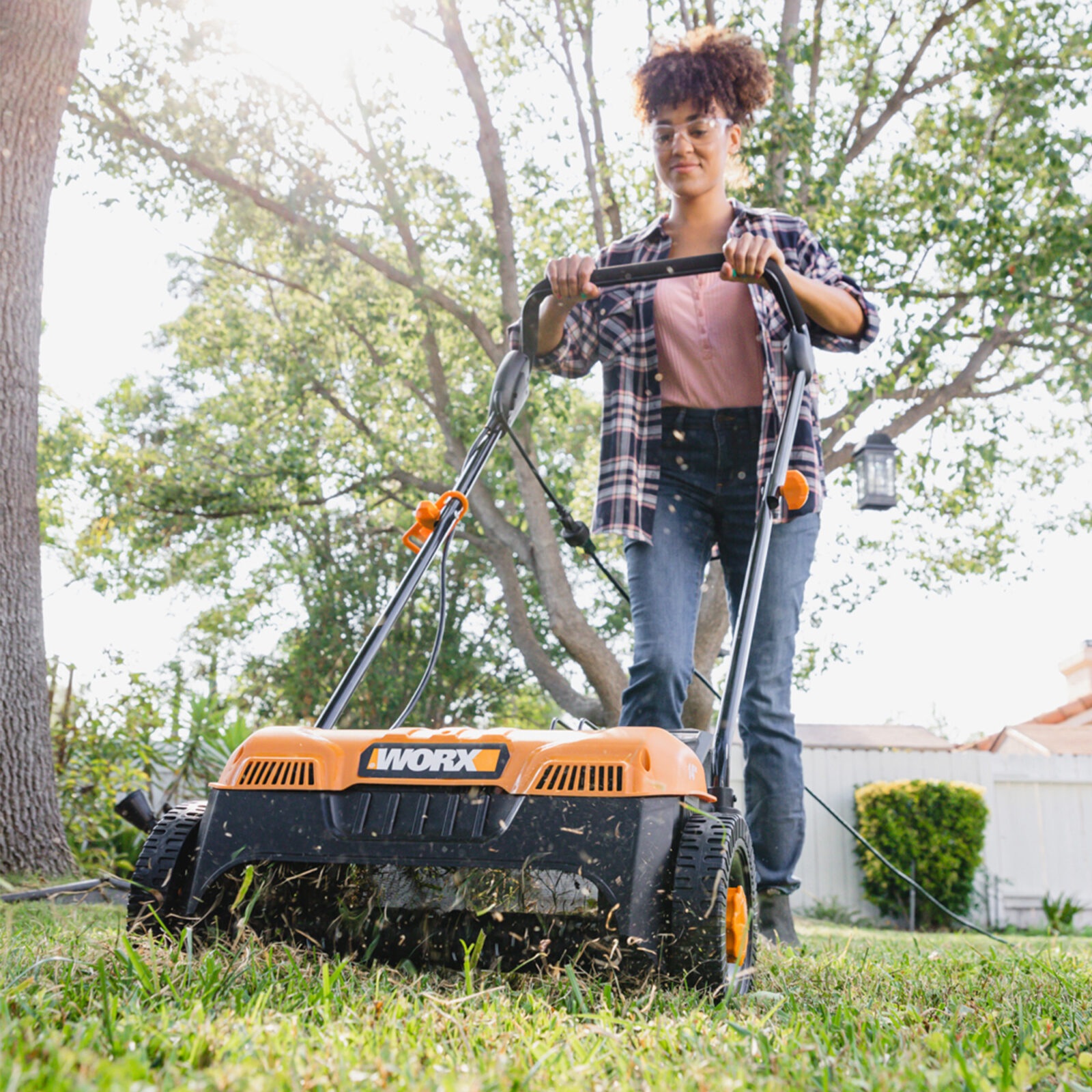 WORX 12 AMP, 14 INCH DETHATCHER REMOVES THATCH FOR A HEALTHY, REVITALIZED LAWN