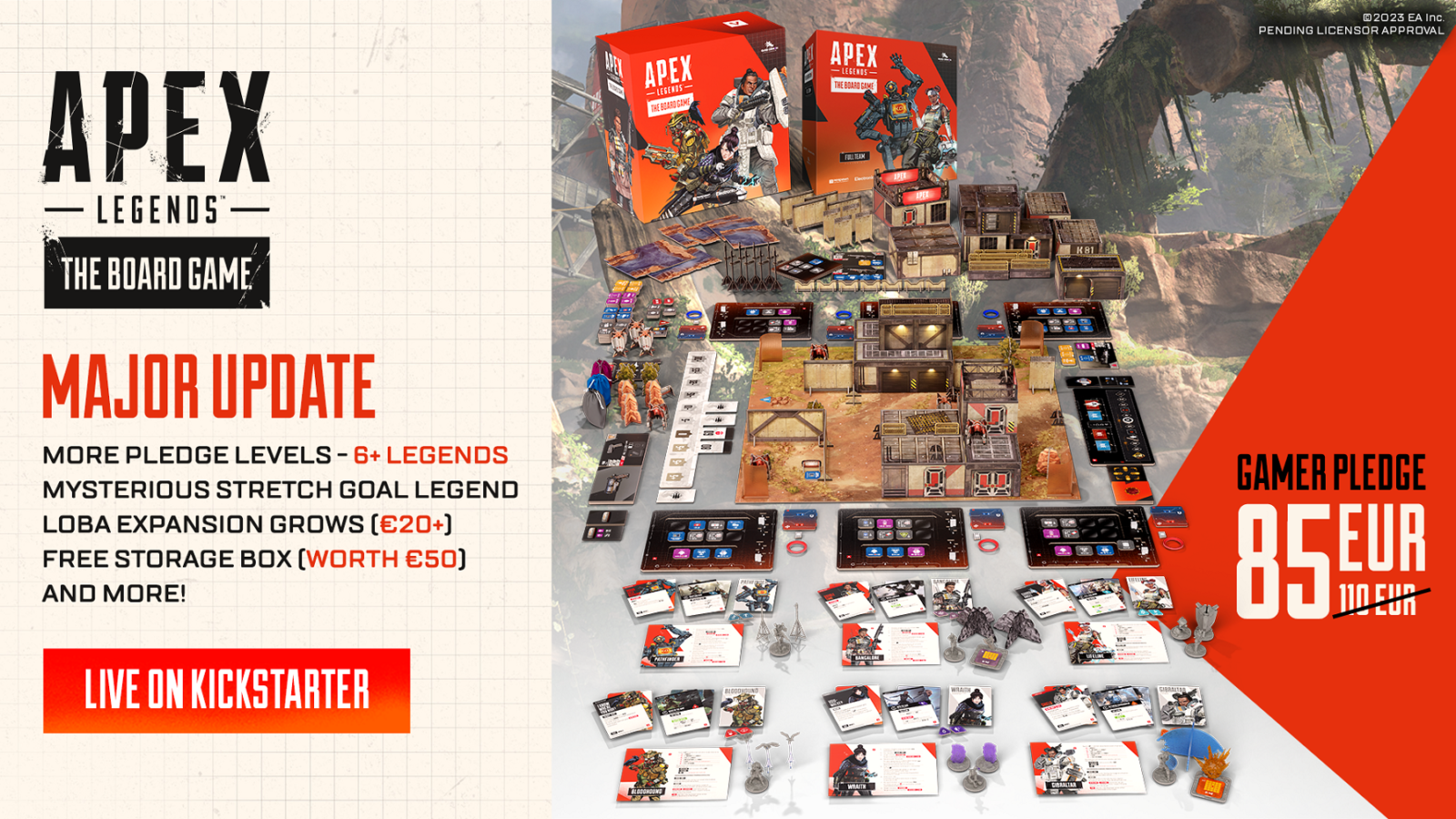 - Three brand new pledge levels, each of which has been retooled for 6-player action and includes additional Legend miniatures, with Lifeline and Pathfinder joining the fray.