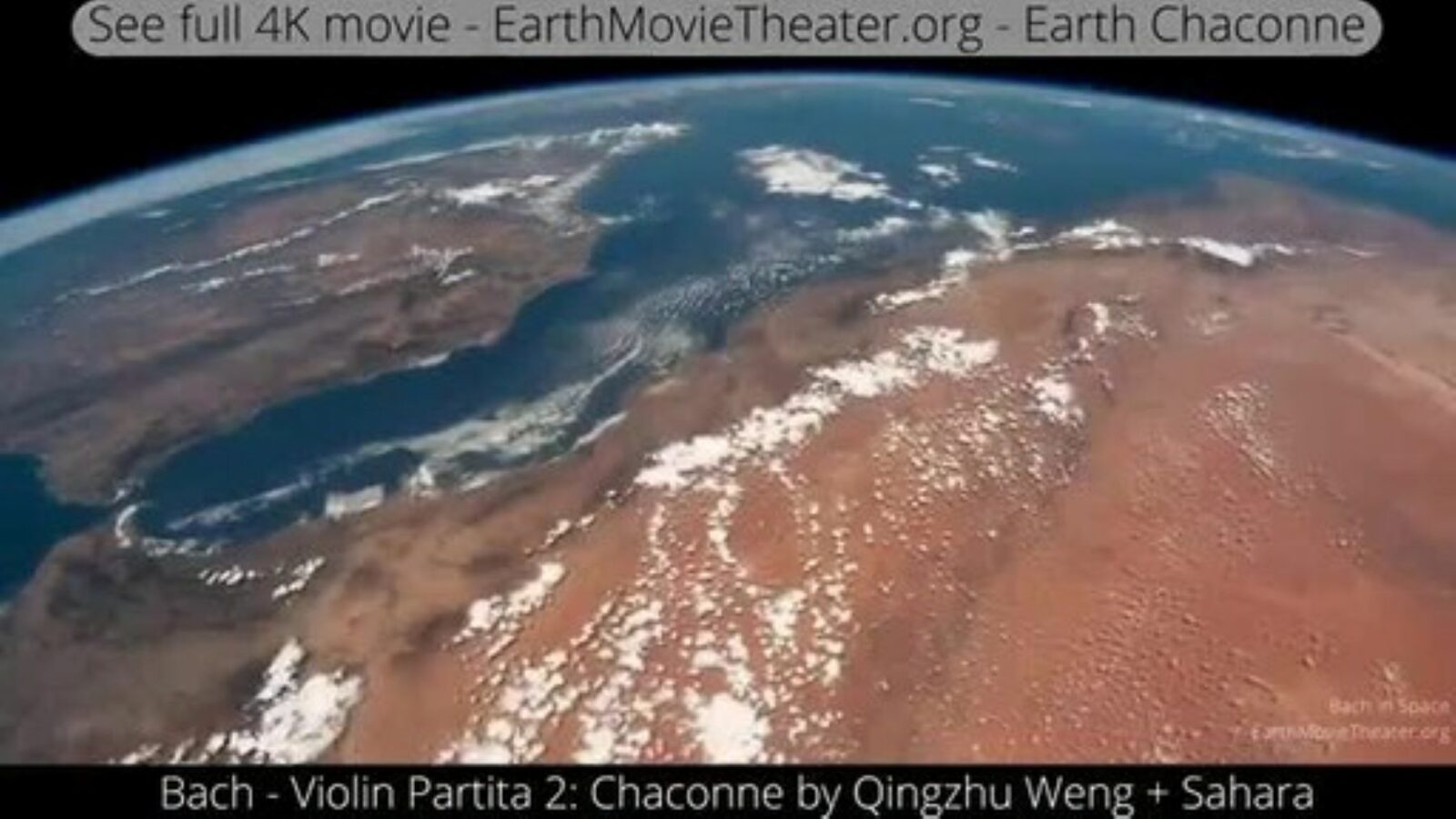 “Earth Chaconne” features a glorious flight path over the Sahara, Mediterranean and Eastern Europe, as photographed from the International Space Station. The music is Bach’s Violin Partita 2: Chaconne, powerfully played by Qingzhu Weng, a winner of the 2022 International Bachfest Competition.