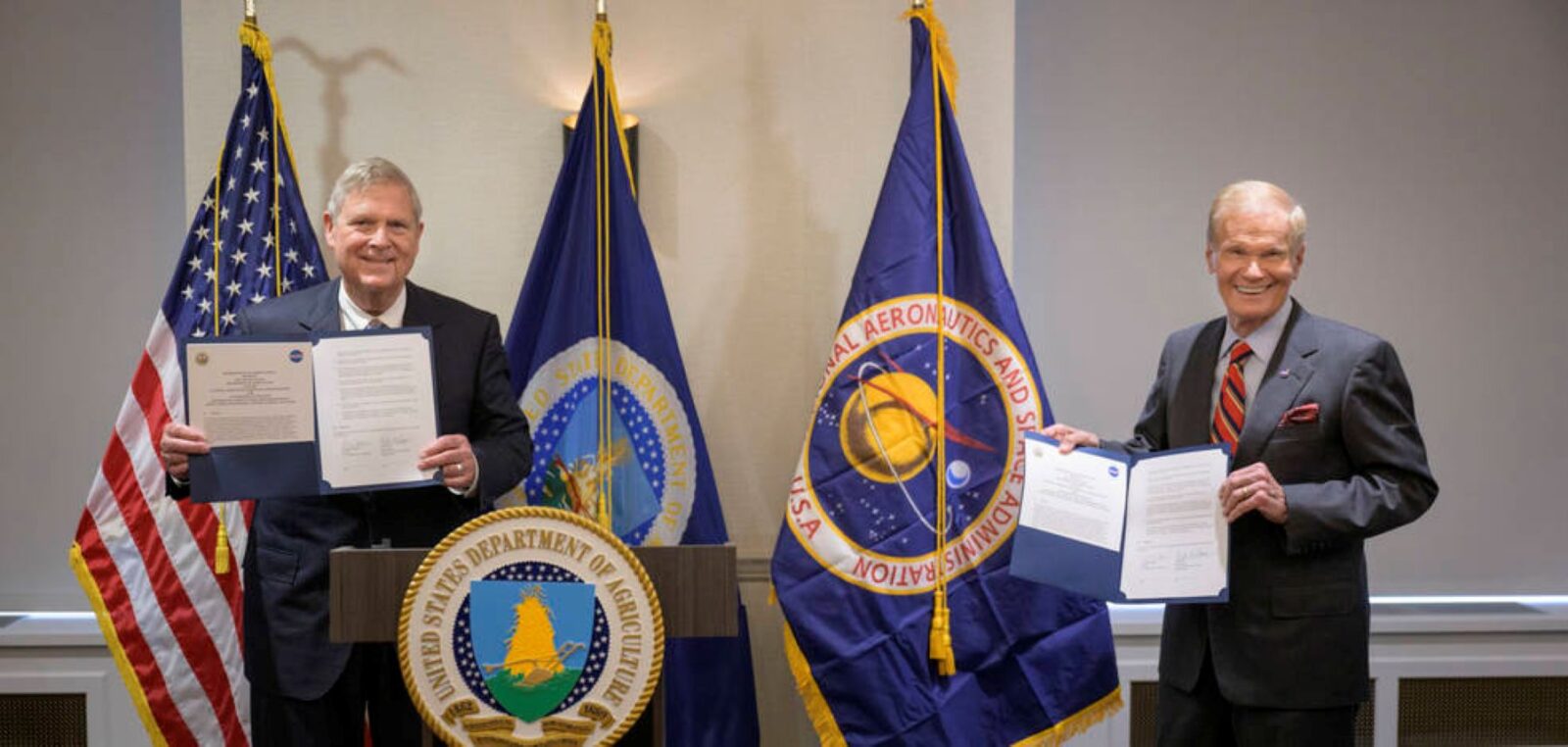 NASA and the USDA (U.S. Department of Agriculture) signed a memorandum of understanding Wednesday strengthening the collaboration between the two agencies, including efforts to improve agricultural and Earth science research, technology, agricultural management, and the application of science data and models to agricultural decision making.