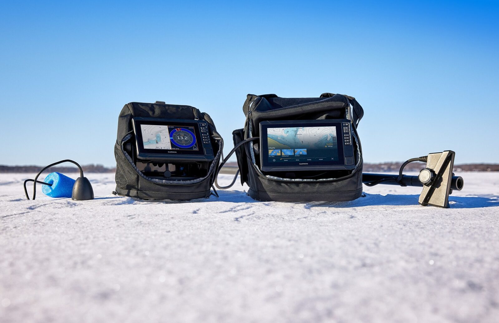 All of Garmin’s versatile ice fishing bundles include a rugged, glove-friendly portable carrying case, and can be easily transitioned from the ice to the boat in the summer months when the ice thaws.