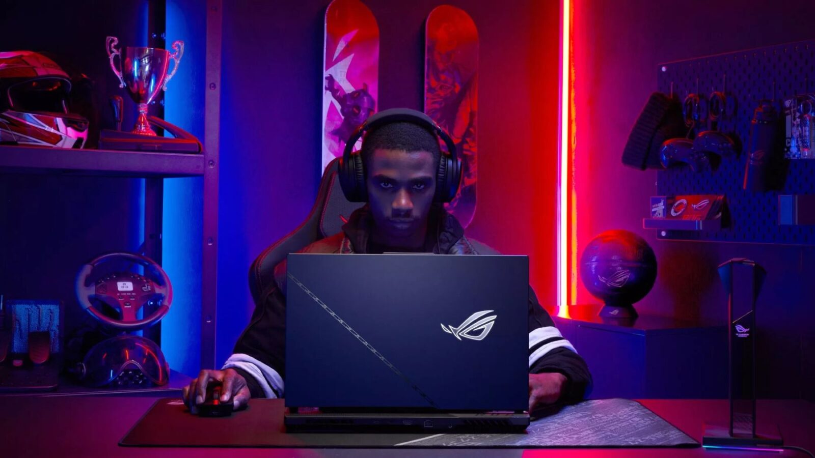 You also get the same bold, sporty design that the Strix series is known for, with an aluminum lid adorned by the ROG “slash” pattern and a white backlit logo, with plenty of RGB lighting across the keyboard and bottom light bar to customize. Plentiful I/O, including multiple USB Type-C ports, HDMI 2.1, and 2.5G Ethernet let you connect all your peripherals, while the 17-inch QHD 240Hz display keeps your games looking sharp with butter-smooth motion. G-Sync and Advanced Optimus ensure you see every frame without tearing or stuttering, and a low 3ms response time minimizes ghosting so you clearly see every enemy coming your way.