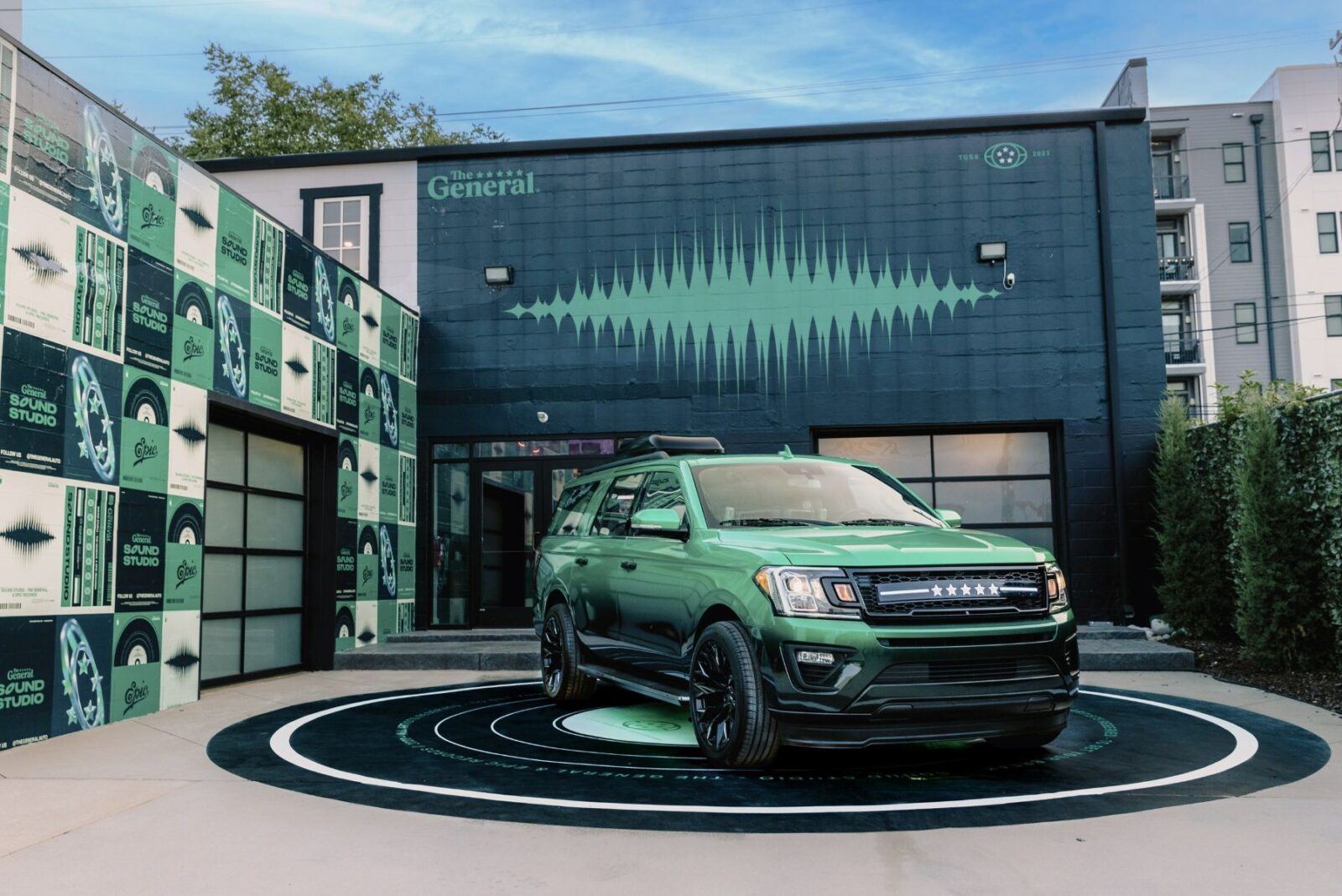 Designed by fabrication company Cinema Vehicles in North Hollywood, California, The General Sound Studio was created to be the first professional-grade recording studio contained within the type of passenger vehicle their customers drive. The professional-grade studio is housed inside a spacious, sleek SUV, fitted with top-of-the-line audio equipment. The car features a green-black ombré-wrapped exterior, a customized grill with The General’s iconic five stars and logo customizations in multiple spots — including the kickplate and side mirrors.
