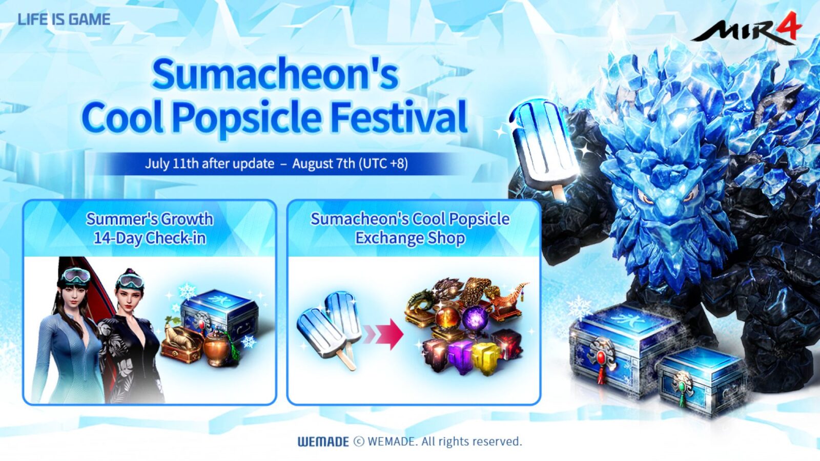 -Wemade’s blockbuster MMORPG MIR4 is holding the summer event “Sumacheon’s Cool Popsicle Festival” from July 11th.