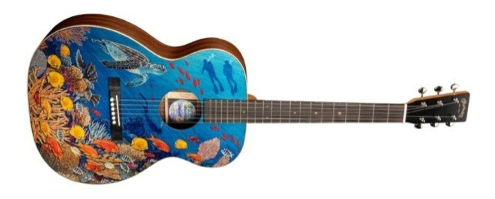 The OM Biosphere was designed to show Martin’s support for the preservation and replenishment of coral reefs, which are some of the most diverse and valuable ecosystems on earth. The model is 100% FSC® certified (license code FSC-C008304) and only the second plastic-free guitar in production today, preceded by the 00L Earth guitar. Even the gig bag is sustainable: made from hemp—a Martin first. Now with the Preferred by Nature certification, this model will be adorned with the Preferred by Nature Hummingbird Seal, a distinction that was not easily earned and one that the company is quite proud of.