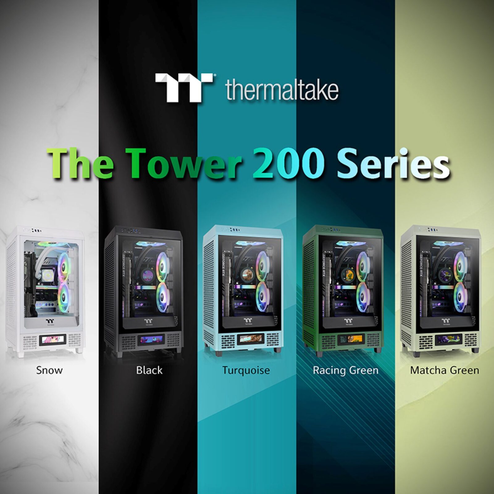 The Tower 200 is an unparalleled chassis with a compact size, marvelous cooling performance, and great hardware that can support up to a 4090 GPU and a 280mm AIO. Available in Turquoise, Racing Green, and Matcha Green, The Tower 200 series provides unique color selections for users to create their ideal work and entertainment space!