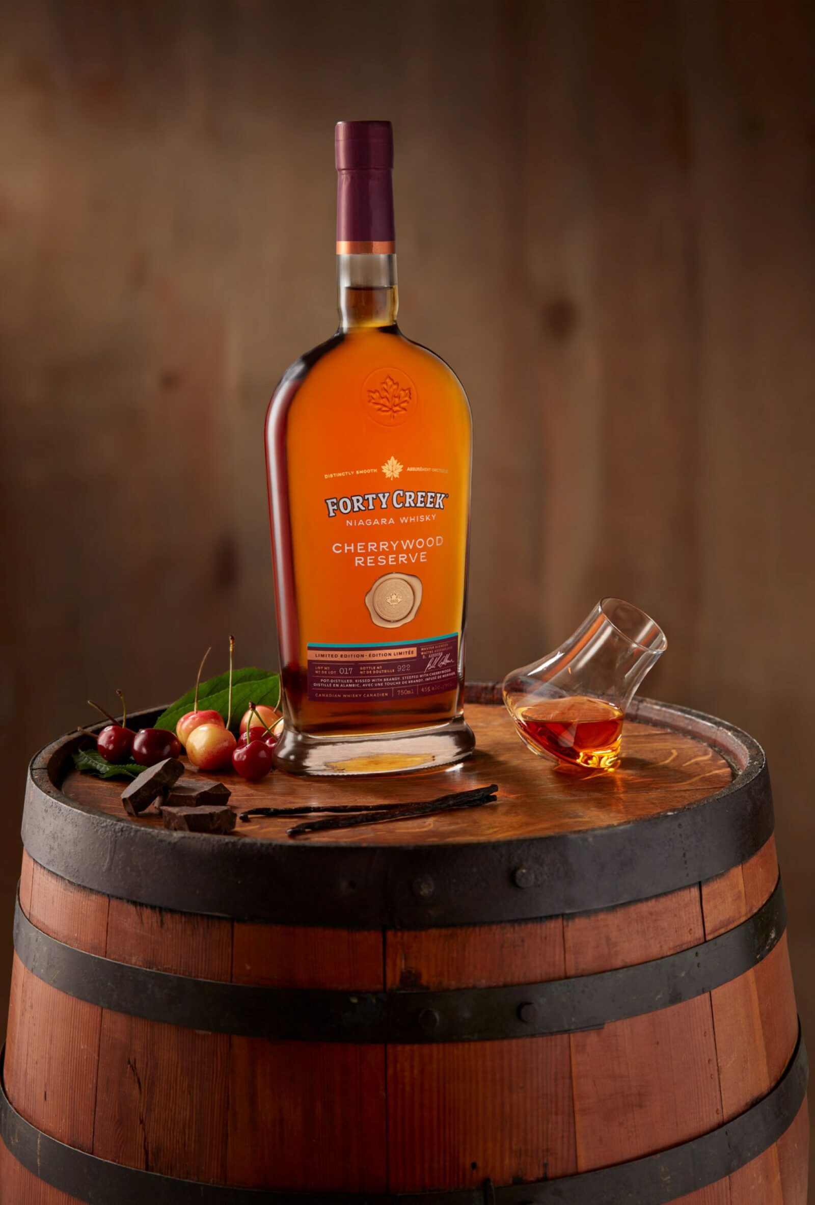 Forty Creek, the award-winning Canadian whisky brand, announces the launch of its 2023 Limited Release, Cherrywood Reserve, a distinctly Niagara whisky with cherry aromas and a kiss of brandy. Cherrywood Reserve pays homage to the Niagara Region by crafting an exquisite whisky steeped in cherry wood from one of Ontario’s most treasured fruit belts, bringing out a wonderfully unexpected character and flavour.