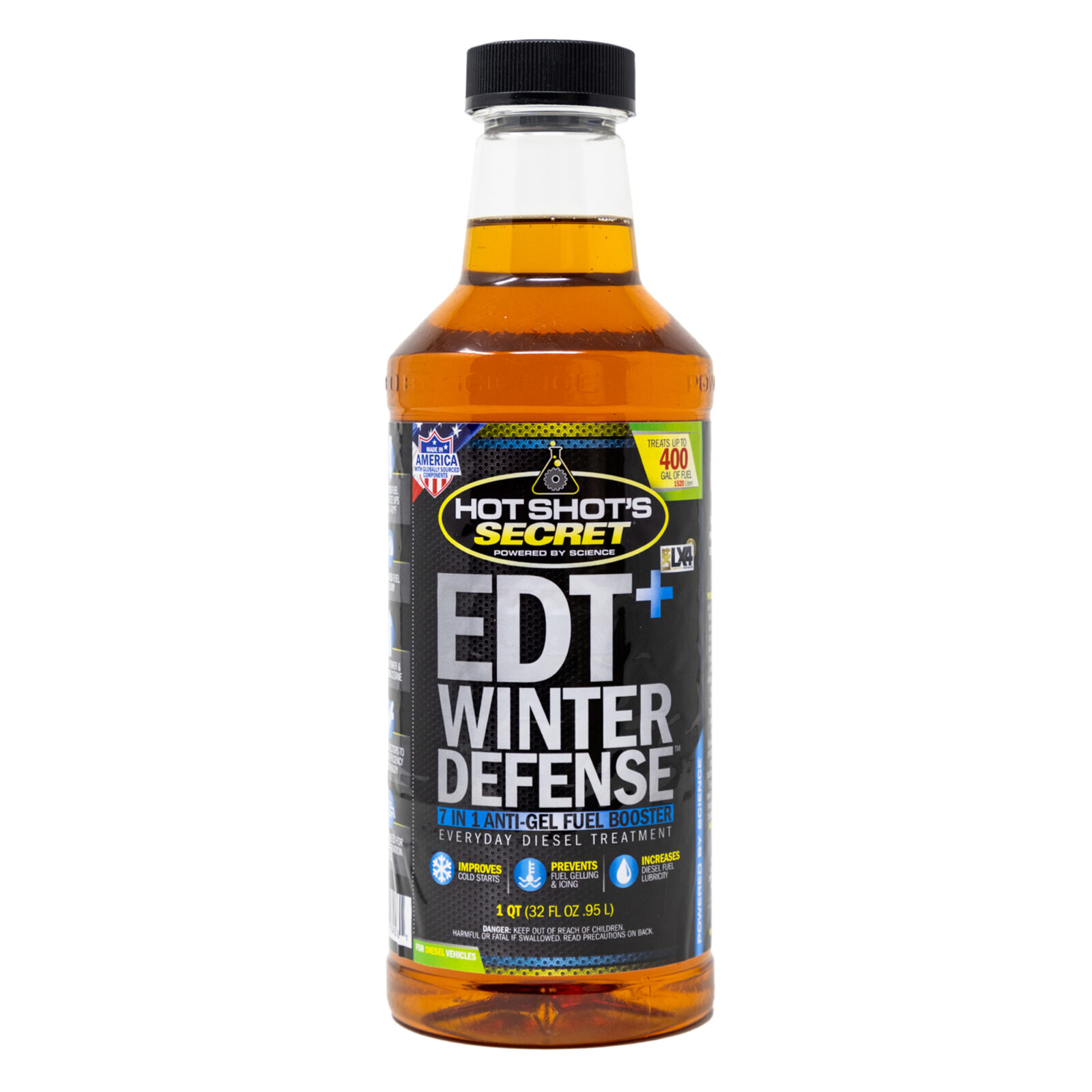 EDT+ Winter Defense fuel additive combines all the values of Hot Shot’s Secret’s best-selling fuel additive Everyday Diesel Treatment such as increased lubricity, fuel economy, power, and MPG, with anti-gel properties to reduce fuel line freeze-ups during cold weather. Introduced in September 2022, EDT+ Winter Defense is a preferred product for diesel engines when temperatures start to drop to improve cold weather operability and reduce hard starts by preventing paraffin wax precipitation during cold weather. By minimizing the size of the wax crystals, fuel can travel through the fuel filter at temps below 20°F, the cloud point of diesel fuel. EDT+ Winter Defense is recommended for use in any on-or-off-road diesel vehicle including cars, trucks, heavy-duty, semi-trucks, vans, buses, heavy and agricultural equipment, or utility vehicles.
