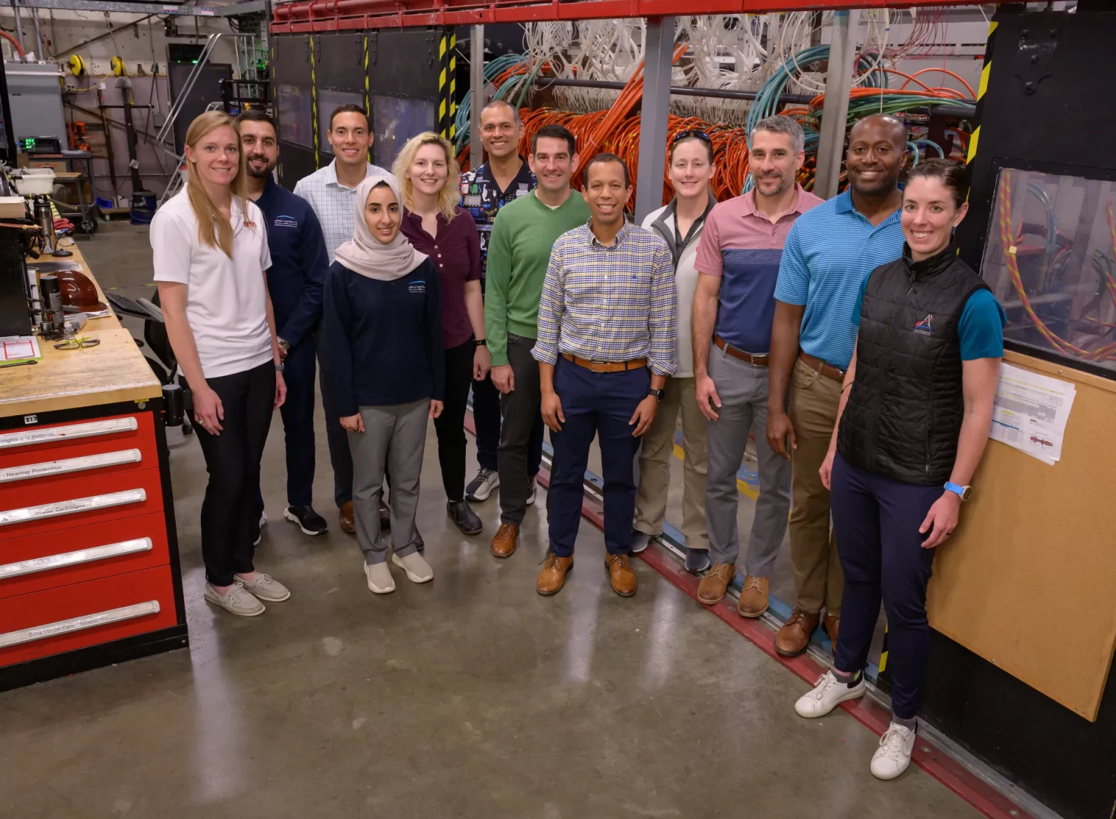 NASA’s current class of astronaut candidates toured the agency’s Ames Research Center in California’s Silicon Valley, including a stop at the Arc Jet Complex, on Wednesday, Nov. 8, 2023. In the arc jet facilities, Ames researchers test advanced materials that protect spacecraft from the extremely high temperatures of entering an atmosphere – whether Earth’s, Mars’, or another in our solar system.
