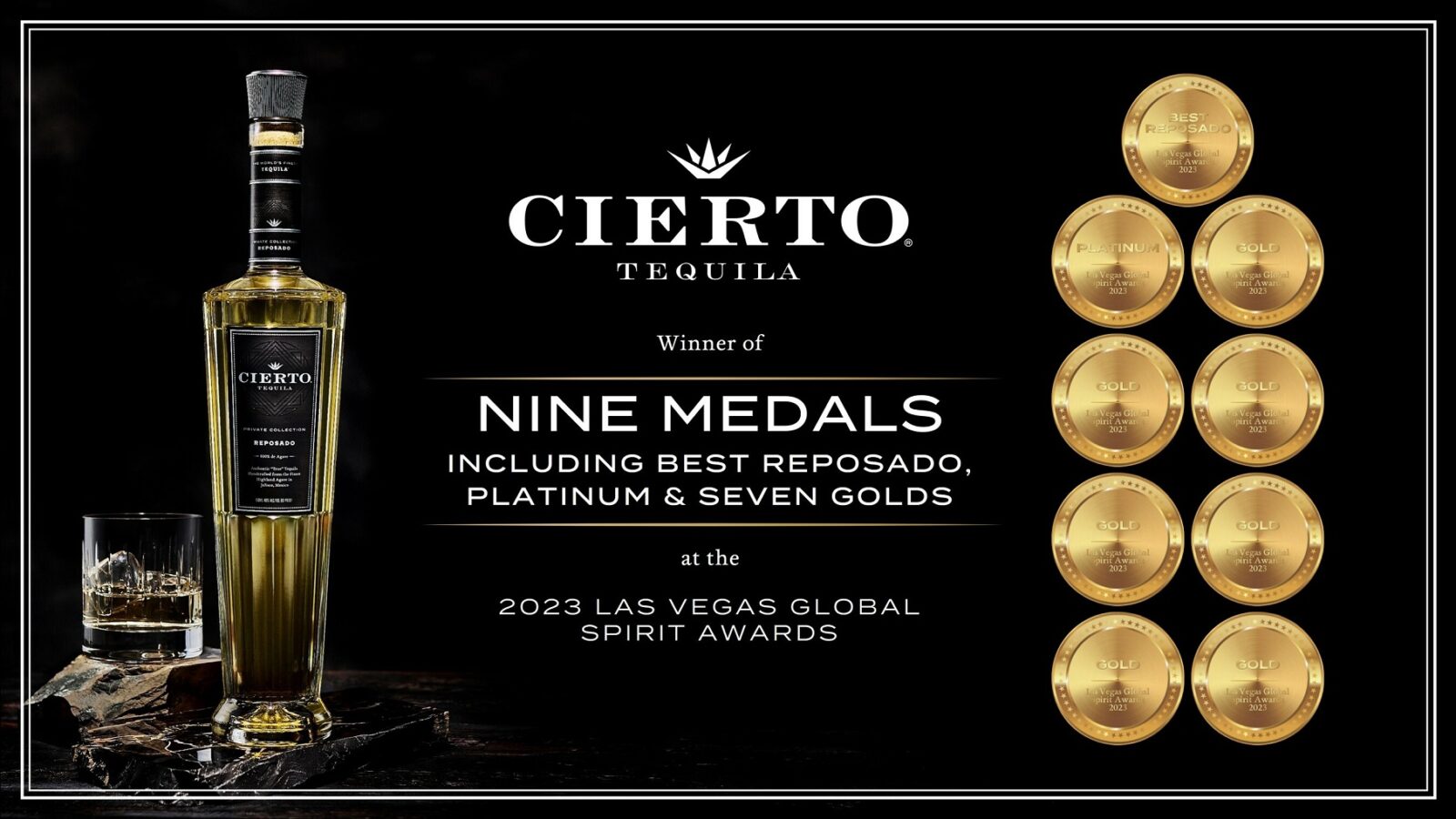 The Elevated Spirits Company is pleased to announce that Cierto Tequila won nine (9) medals, including Best Reposado, one (1) Platinum medal and seven (7) Gold medals at the 2023 Las Vegas Global Spirit Awards (LVGSA) – by far the most of any spirits brand in the competition. With these new honors, Cierto has won eight hundred eleven (811) international accolades to date.
