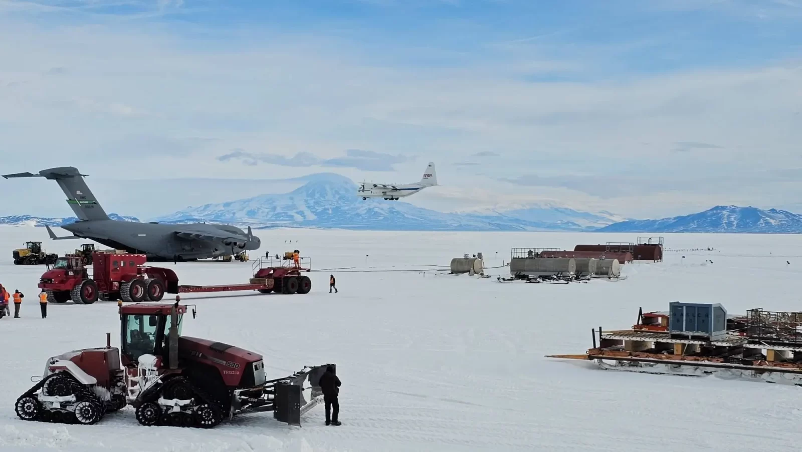 NASA’s Wallops Flight Facility C-130 aircraft, shown in this image from Oct. 28, 2023, delivered the agency’s Galactic/Extragalactic ULDB Spectroscopic Terahertz Observatory (GUSTO) payload to McMurdo Station, Antarctica. This was the first mission to Antarctica for the plane.
