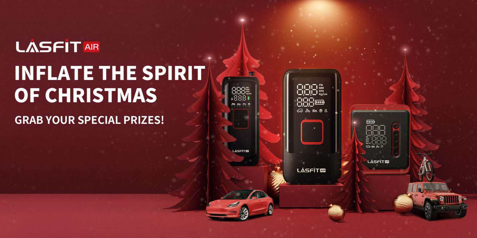 Embracing the festive cheer, LASFIT AIR, the dynamic sub-brand specialising in air inflation technology of LASFIT, joyfully announced its Christmas campaign on December 5th, offering exclusive benefits for customers. Since the brand was born, it has enriched its innovative product lineup with TK1 AirMaster Tire Inflator for Off-Road, CR1 40s Fast Tire Inflator for Cars and BM1 Mini Tire Inflator for Riders.