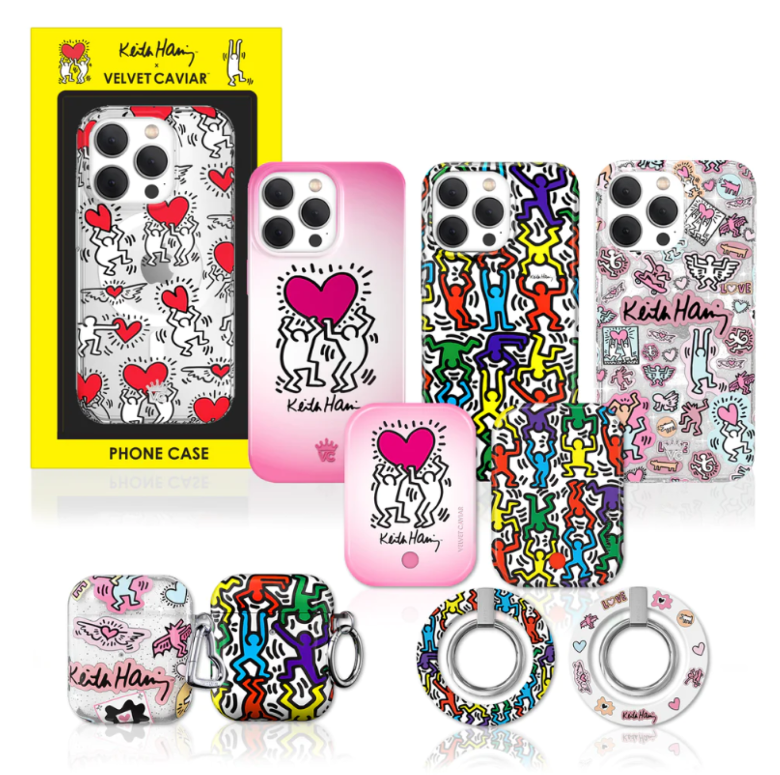 | Velvet Caviar, the female-founded tech accessory brand, announced the launch of a new collection with globally recognized artist and pop culture icon, Keith Haring. The limited-edition Velvet Caviar x Keith Haring Capsule Collection features four unique phone cases with an arsenal of accessories including a special wireless charging pack, perfect for holiday travel plans. The collection is available for purchase exclusively on VelvetCaviar.com. Known for merging the worlds of tech and fashion through design and innovation, Velvet Caviar is committed to offering a fresh selection of new releases with dependable quality and protection. The signature, celebrity-loved cases were reimagined with a nod to classic Keith Haring artwork such as the heart, rainbow dancers and more. The collection ranges from a Stick-on Grip for $12.00, Magnetic Phone Grips (compatible with MagSafe) for $25.00, AirPod Cases for $25.00, Battery Packs for $70.00 and phone cases for iPhone & Samsung phones for $45.00. |