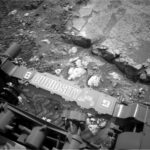 Curiosity is currently investigating “Whitebark Pass” (which sounds like it should be an ice cream flavor, right?) with a variety of rock textures and colors in our workspace. We spent the weekend at this location, investigating some of the light-toned, pitted clasts and the gray crumbly material that lines the slab. Then there’s the slab itself, and some bright white clasts that we crushed with the rover wheel which caught our eye. The Navcam image above shows the rover arm going in for a close inspection of the slab.