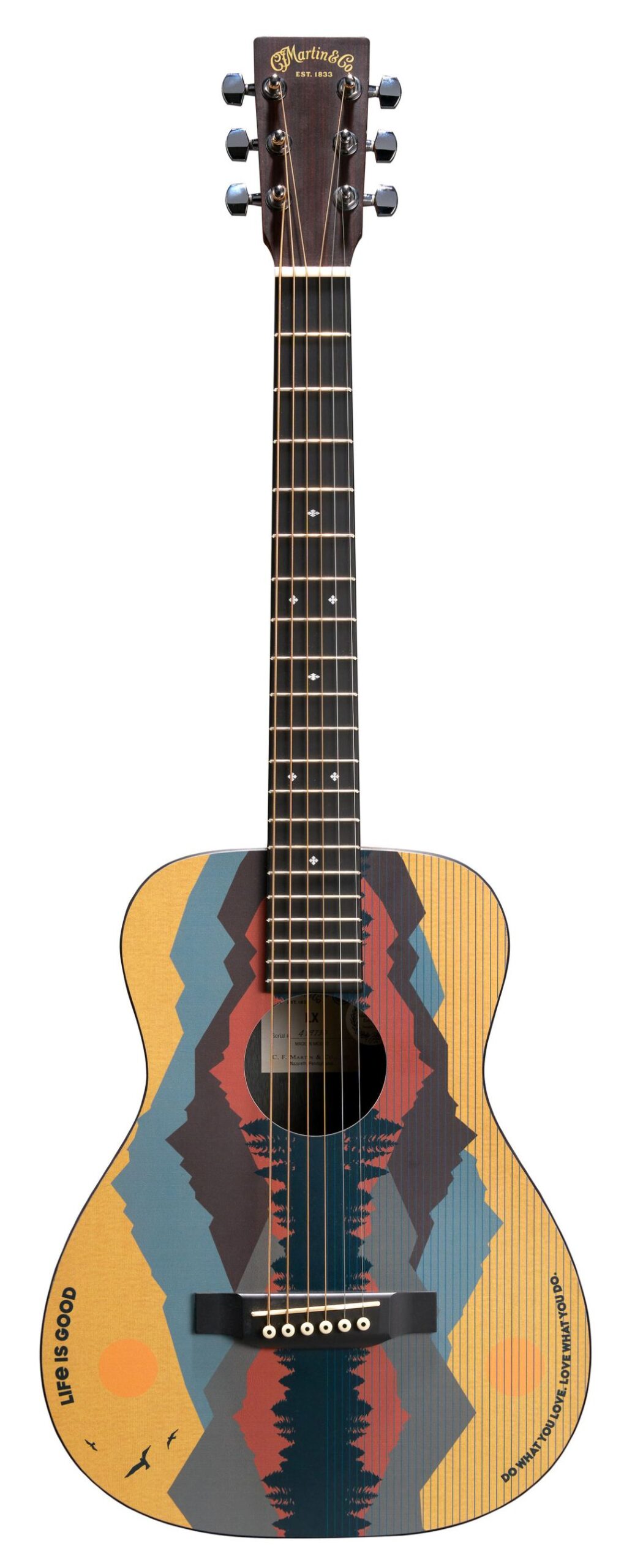 Martin Guitar, the world’s premier acoustic guitar and ukulele manufacturer, has once again partnered with Life is Good®, spreading the message of optimism through music with the launch of the LX1 Life is Good acoustic guitar.