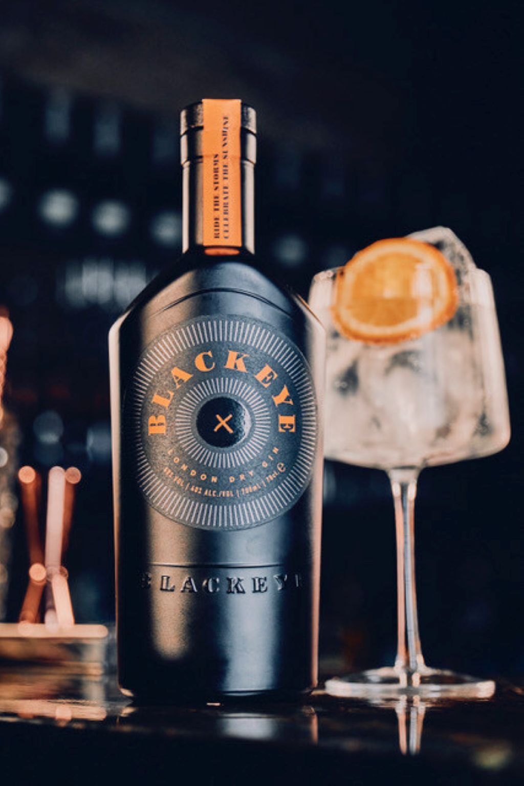Please drink responsibly. Blackeye Gin. 40% Alc/Vol. 70cl $48.75.