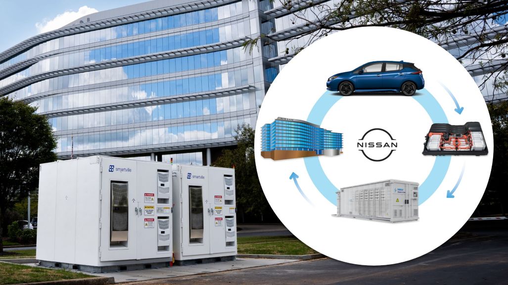 Nissan Americas Headquarters in Franklin, Tennessee, is adding two second-life battery systems to help offset building power consumption and extend the use of electric vehicle batteries. The project is a core part of Nissan’s sustainability goals, contributing to the company’s mission of maximizing the use of repurposed and recycled materials while minimizing the amount of waste generated.
