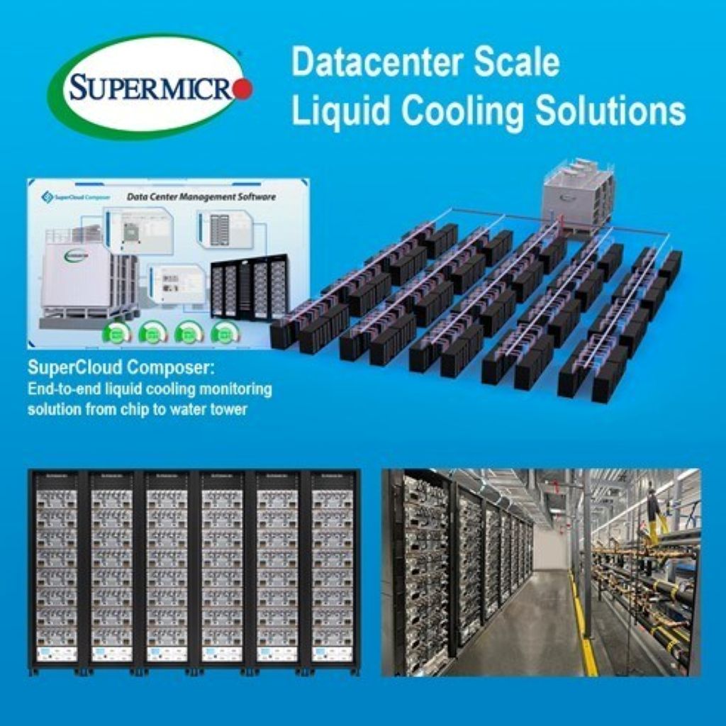 Supermicro, Inc. (NASDAQ: SMCI), a Total IT Solution Provider for Cloud, AI/ML, Storage, and 5G/Edge, is announcing a complete liquid cooling solution that includes powerful Coolant Distribution Units (CDUs), cold plates, Coolant Distribution Manifolds (CDMs), cooling towers and end to end management software. This complete solution reduces ongoing power costs and Day 0 hardware acquisition and data center cooling infrastructure costs. The entire end-to-end data center scale liquid cooling solution is available directly from Supermicro.
