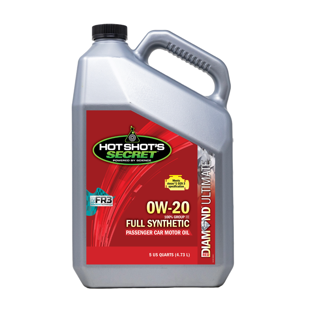 Red Diamond is made from 100% Group III base oils and is infused with Hot Shot’s Secret’s proprietary FR3 friction reducer nano lubricant to improve performance, protect engine components, mileage and horsepower. The anti-wear component of FR3 is a proprietary carbon nano lubricant that fills in microscopic irregularities on any machined surface. This motor oil works equally well in both hybrid and traditional internal combustion engines, especially small displacement, turbocharged GDI engines where it can protect against low-speed pre-ignition.