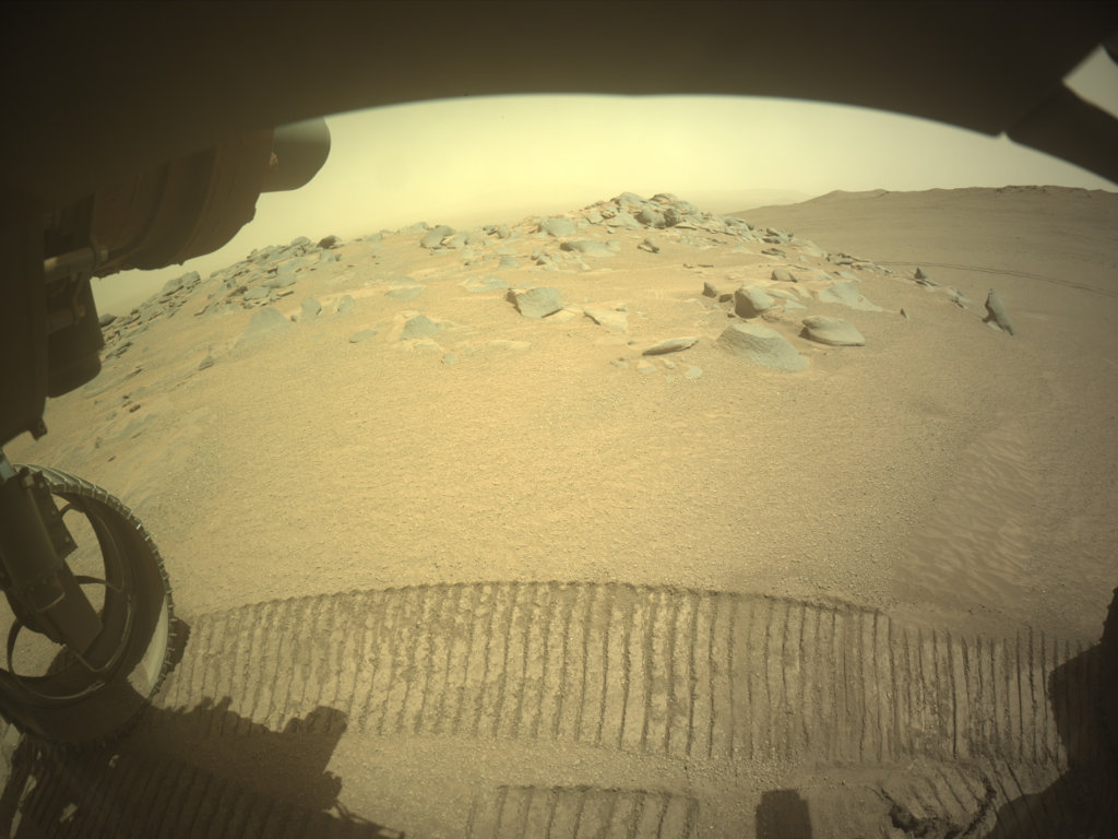 Following our abrasion activities at Pico Turquino, the rover will be hitting the road en route to its next science stop at “Witch Hazel Hill.” Orbital views of Witch Hazel Hill suggest the area may contain layered and light-toned bedrock that likely record important information of the planet’s ancient climate. Prior to arriving at Witch Hazel Hill, the rover plans to pass through a high point known as Lookout Hill that will afford the team incredible views looking back into the crater, as well as get a glimpse westward of terrain far beyond Jezero.