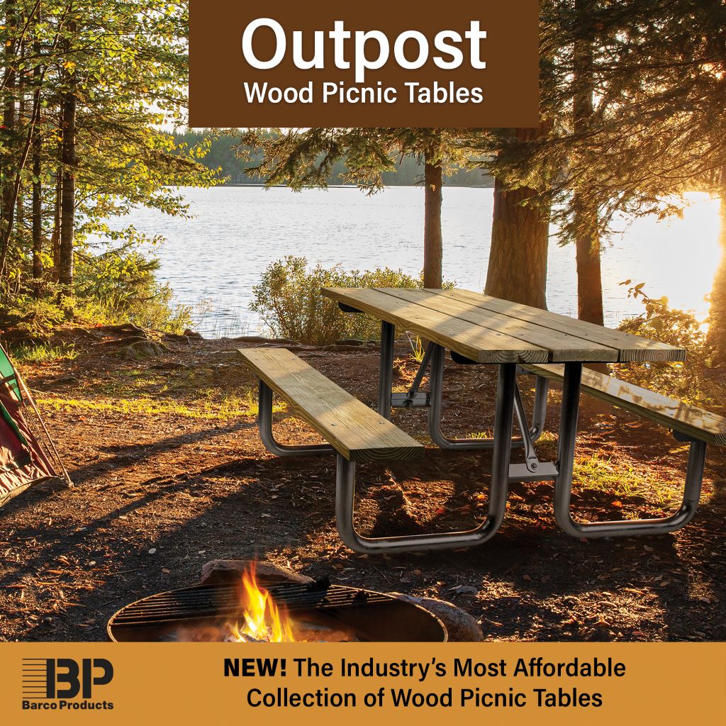 Barco Products, LLC, a designer, manufacturer, and distributor of commercial outdoor site furnishings and traffic safety products in Batavia, Illinois introduces Outpost Wood Picnic Tables, a new product line of high-density, #1 pressure-treated, Southern Yellow Pine wood picnic tables for customers looking for sustainable and budget-friendly options.