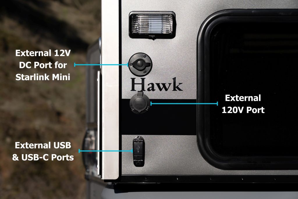 Four Wheel Campers is committed to delivering features that elevate the overlanding experience for customers. By making external power ports standard, the company ensures that adventurers have the power solutions they need for a connected and comfortable journey. These ports are designed to provide efficient power for Starlink setups, essential gear, and small devices, making every trip more convenient and enjoyable.