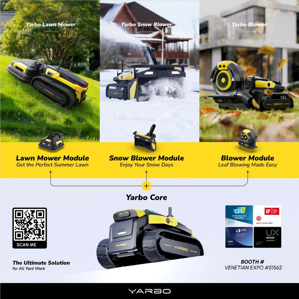 Yarbo, the innovative company redefining outdoor automation, is excited to announce its participation at CES 2025. Yarbo will be showcasing its cutting-edge lineup of outdoor robotic solutions, including the latest versions of its Lawnmower, Blower, and Snow Blower modules equipped with the Smart Assist Module. Media and attendees are invited to experience first-hand how Yarbo continues to push the boundaries of convenience, technology, and performance in outdoor tools.