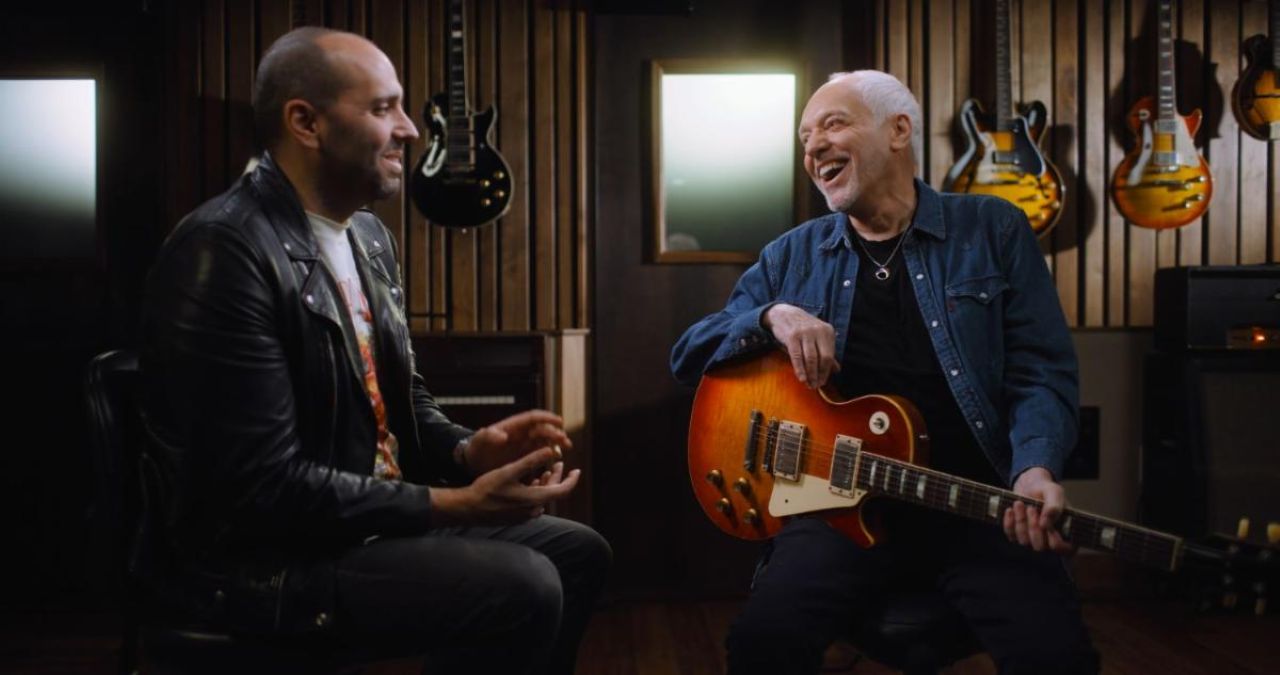 | Above: Host Mark Agnesi (Director of Brand Experience at Gibson) and Peter Frampton take a deep dive into his personal guitars on Gibson TV’s “The Collection.”Photo credit all: Gibson TV, HERE.AXS TV Broll, credit AXS TV HERE.Gibson TV “The Collection” Broll, credit Gibson TV HERE. |