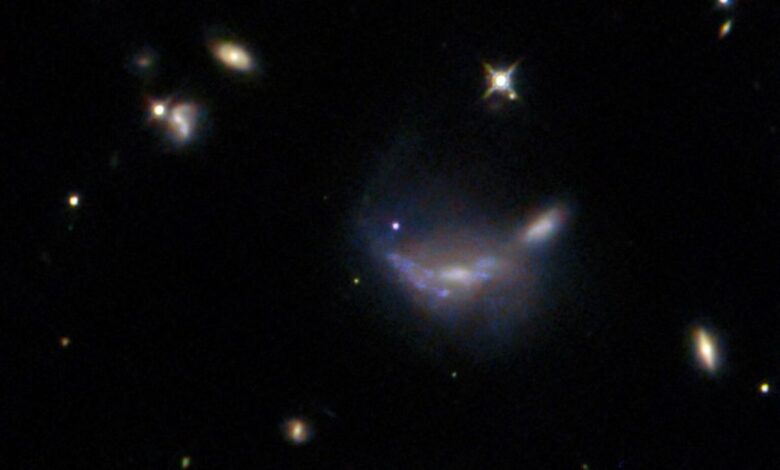 The subject of this NASA/ESA Hubble Space Telescope image is a supernova-hosting galaxy located about 600 million light-years away in the constellation Gemini. Hubble captured this image roughly two months after a supernova named SN 2022aajn was discovered. The supernova is visible as a blue dot at the center of the image, brightening the hazy body of the galaxy.