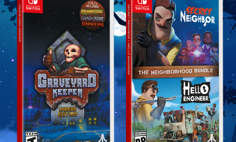 Atari released physical editions of three popular titles from indie publisher tinyBuild on the Nintendo Switch. Graveyard Keeper: Undead Edition receives a standalone physical release, while The Neighborhood Bundle combines Secret Neighbor and Hello Engineer. The titles are available now from Atari.com, Amazon, and select retailers worldwide.