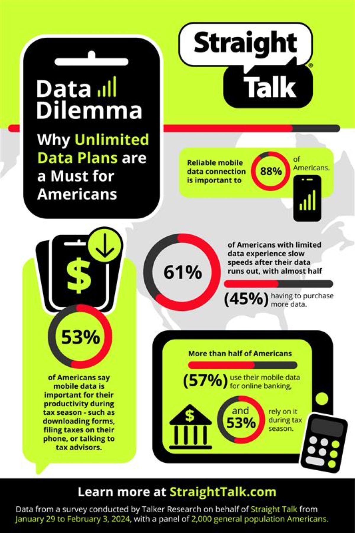 Tax season can be a stressful time for many, and Straight Talk recognizes that even when money feels tight, people can still be Data Rich – thanks to its real unlimited data plans. In fact, data plays a crucial role in people’s everyday lives, especially during tax season. According to Straight Talk’s third annual Tax Time Survey, more than half of Americans (57%) use their mobile data for online banking, and 53% access it during tax season, whether it’s to file taxes right on their phone or speak with tax advisors. With this limited-time event, Straight Talk aims to give back when tax refunds might not be enough.