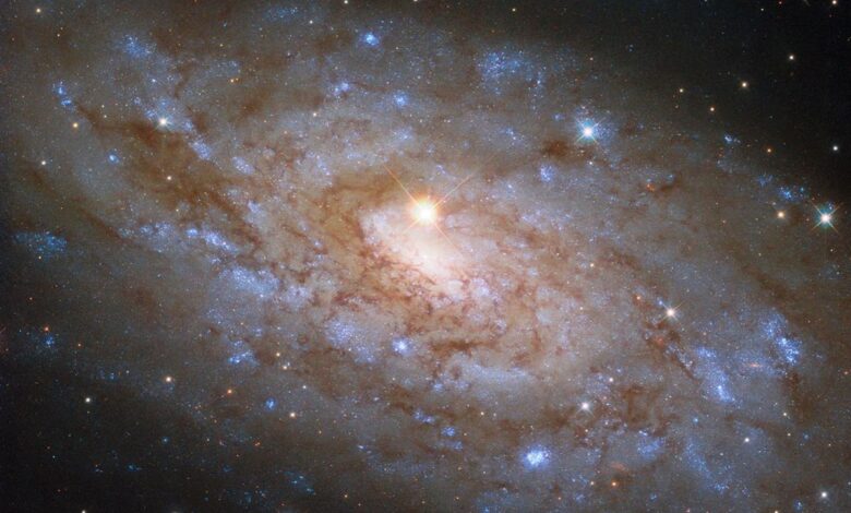 The subject of today’s NASA/ESA Hubble Space Telescope image is the stunning spiral galaxy NGC 5530. This galaxy is situated 40 million light-years away in the constellation Lupus, the Wolf, and classified as a ‘flocculent’ spiral, meaning its spiral arms are patchy and indistinct.