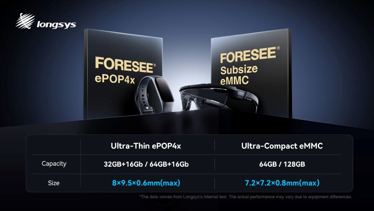Building on the innovation of ultra-compact 7.2mm x 7.2mm eMMC, Longsys (SZ.301308) now presents its latest advancement ideal for wearable storage use cases—the ultra-thin 0.6mm (max) ePOP4x, which enables a more streamlined and efficient device layout.